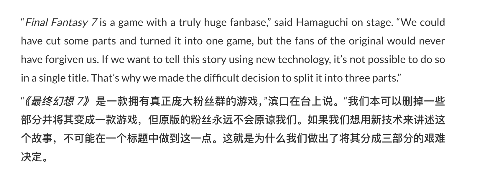 【制作人解谜《最终幻想7》重制版为何分3部】