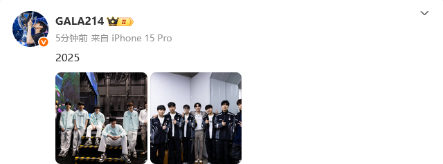 入围赛不敌T1,GALA赛后晒iG众人大合照并配文:2025
