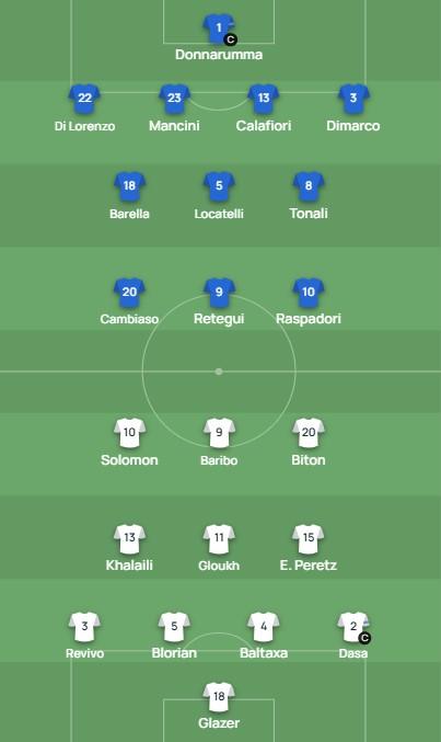 意大利vs以色列首发:托纳利、巴雷拉领衔,卡拉菲奥里出战