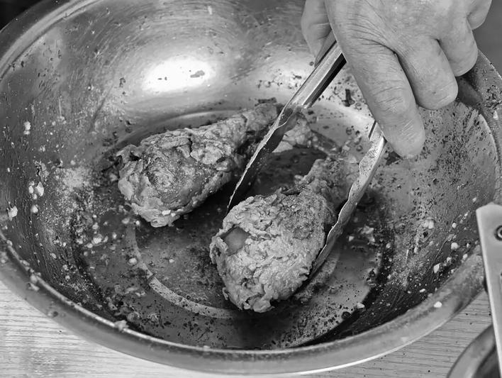 要说“最绝”的,要数他那炸鸡腿的秘方。“光香料就用了二十几种草药,得先煎熬45分钟出香味,再泡上鸡腿腌制12个小时以上。”吴培林说,这一步急不得,少一分钟都没那股子鲜香味。
