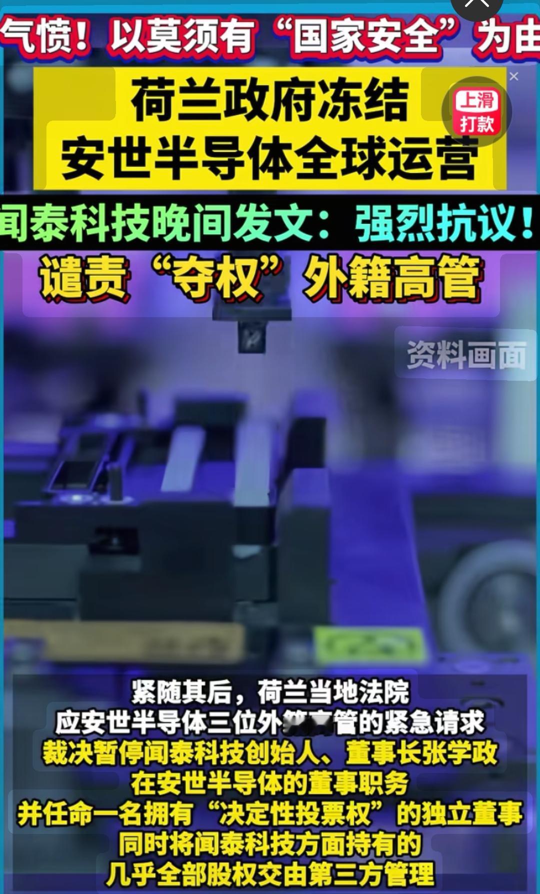 荷兰想当出头鸟,开先例抢中国资产,能不能咽下去? 美国人要求什么,荷兰政府就干什么,在中美关税、稀土管制的节骨眼上,当出头鸟抢中国资产,太把自己当回事,就不怕回马枪? 荷兰在中国的资产可是吃的满嘴流油,应该比在美国赚的还多。 荷兰在中国有哪些公司?中华牙膏还要吗? 日化+食品:联合利华日化,中华牙膏、清扬洗发水等品牌,年营收超200亿元。 半导体:阿斯麦设有15个办事处及研发中心,2022年在华营业额达29.16亿欧元,恩智浦半导体,2024年中国市场销售额占总销售额的36%。 海工装备:豪氏威马(福建漳州)为全球最大生产基地,主要生产海上重型起重设备等,服务于中国海洋工程和海上风电市场。 物流自动化:范德兰德为机场行李处理、快递分拣等提供自动化解决方案。 医疗健康:皇家飞利浦(上海)业务为健康科技、医疗设备,中国是其第二大市场。 金融保险:荷兰全球人寿在中国布局了同方全球人寿、兴证全球基金及荷全私募基金等企业,并于2025年获准设立独资保险资产管理公司,截至2022年末总资产超4000亿欧元。 ING集团旗下的ING银行中国有限公司,为企业提供银行及金融机构服务。 其他领域:荷兰皇家孚宝集团在天津、上海等6地投资开展液体石化产品的码头接卸和仓储业务。菲仕兰食品贸易(上海)有限公司负责“美素佳儿”等品牌运营。喜力(中国)企业管理有限公司通过独资及合资模式运营啤酒业务。 荷兰用政府权利,用政治对中国企业无理由下手,明显违背了世界经济规则,如果中国也像荷兰一样,应该全世界都不会赞同,应该给荷兰一个教训,一个舆论压力,这个头不能开。荷兰 荷兰科技产业 荷兰ASML 荷兰国际集团 荷兰经济 荷兰政府冻结了安世科技 中国升级稀土出口管制有何重要意义
