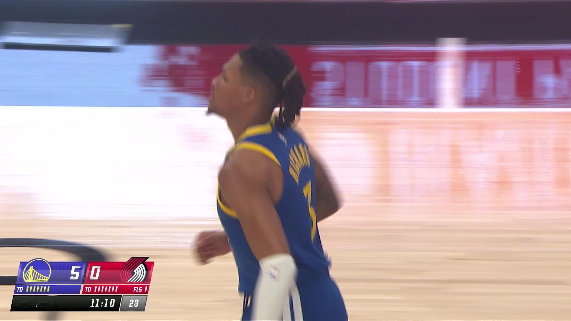 库明加妙传理查德内线得分!勇士vs开拓者