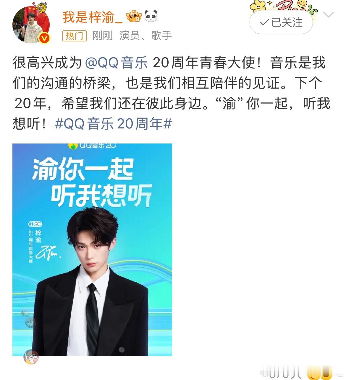 谁懂梓渝这个新公式照的含金量[摊手][摊手],之前就和q音合作,单独为梓渝定制唱