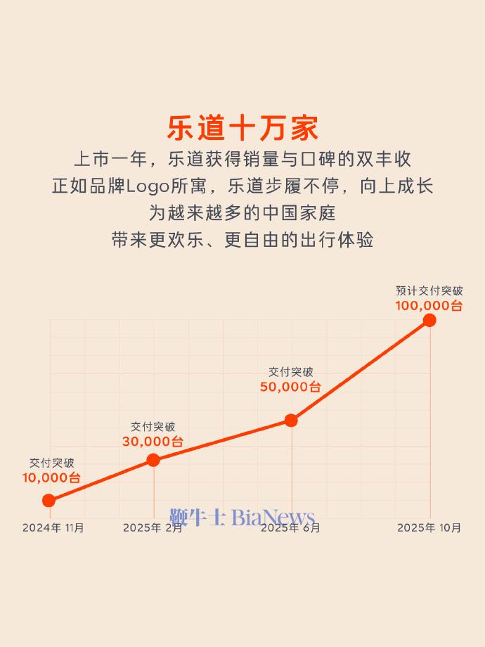 根据介绍,乐道品牌去年11月交付突破10000台,今年2月突破30000台,6月突破50000台,并将在约4个月的时间内迎来10万台交付。