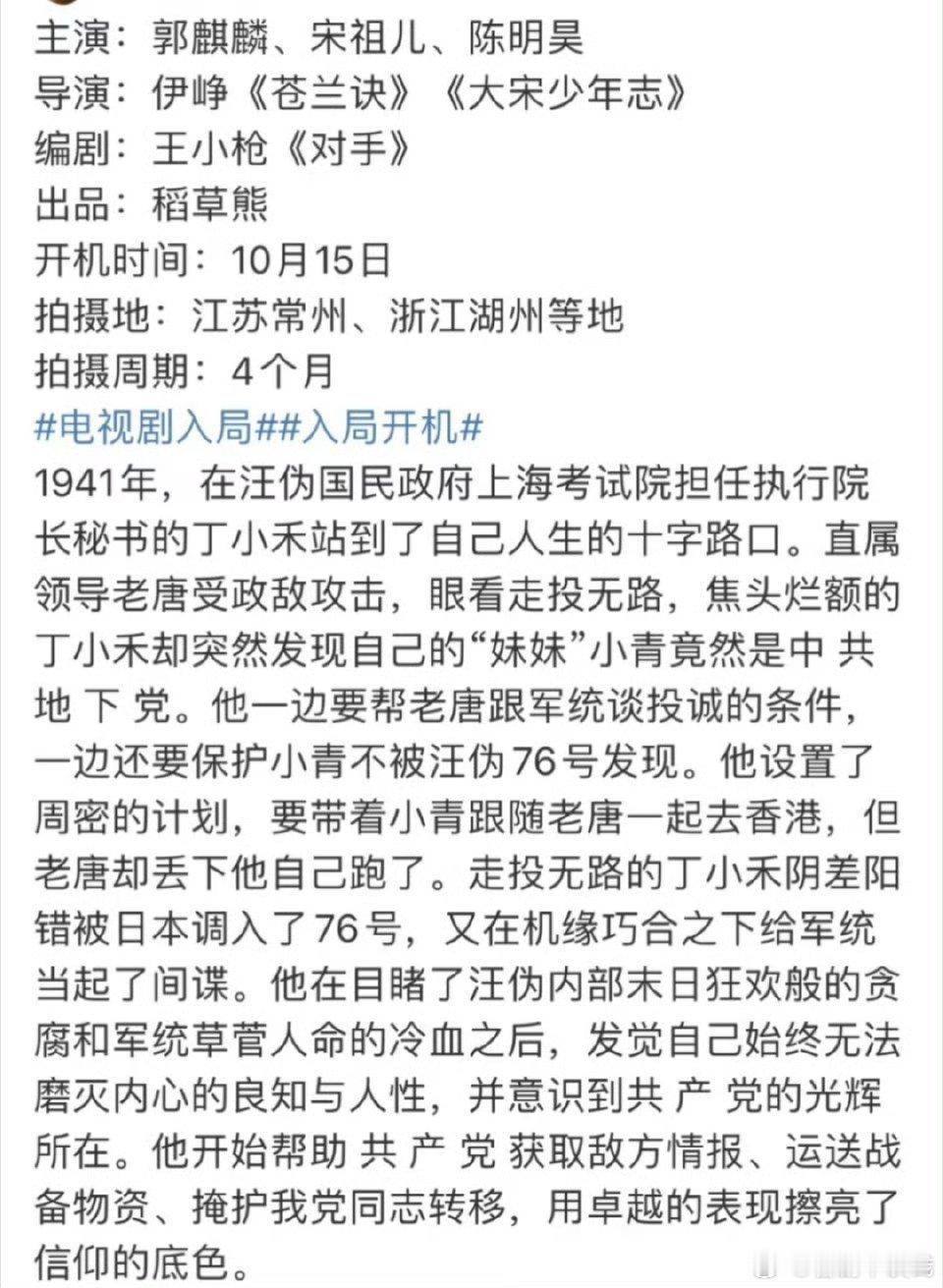 网传《入局》郭麒麟和宋祖儿,1015天津开机,两人在剧中演兄妹[举手] 两个活宝