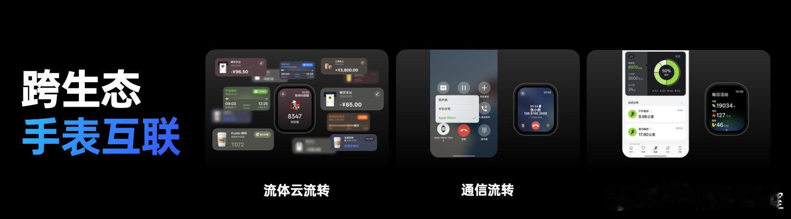 不仅是常规的通话、信息、运动数据的同步,ColorOS 16全面打通了Apple Watch的生态,让OPPO的流体云,也能无缝的在Apple Watch上显示,打车、外卖、取餐码、航班高铁信息全面登陆Apple Watch。