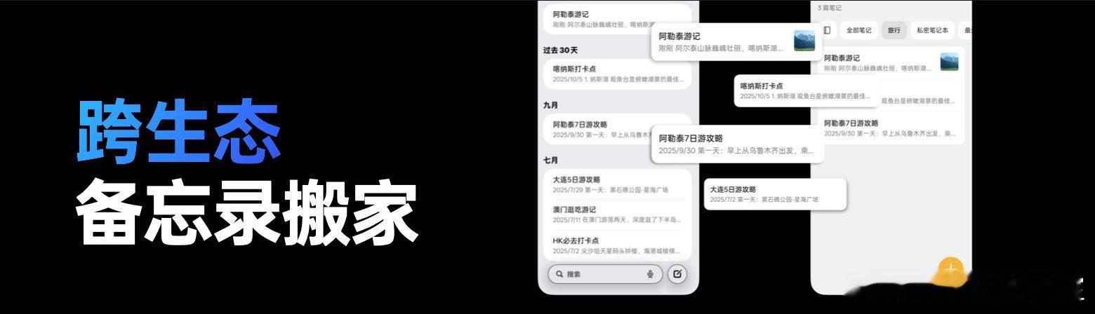 此外,手机备忘录数据迁移,跨屏互联的手机镜像投屏、通知流转以及众多AI能力都全面支持。