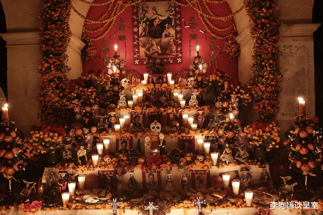 在这些庆典中,人们会在家中搭建祭坛,摆放 “ofrendas(祭品)” 以供奉逝去亲人的灵魂。蜡烛照亮逝者的照片和遗物,家人会朗读写给逝者的信件、诗歌,讲述与他们相关的趣闻轶事和笑话。玉米粉蒸肉、辣椒、水、龙舌兰酒和 “亡灵面包(pan de muerto,专为节日制作的特色面包)” 等祭品,会沿着颜色鲜艳的橙色或黄色万寿菊花(cempasúchil)排列 —— 万寿菊浓郁的香气能引导亡灵回家。