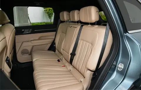 座椅采用仿皮材质,触感柔软,透气与支撑性佳。人体工学设计让腰部和背部支撑到位,我连续驾驶 三 小时,下车也无明显腰酸背痛。主驾座椅支持 12 向电动调节和 4 向腰托调节,还有 10 点式按摩功能。前排座椅带加热、通风功能,冬暖夏凉,实用性强。七 座版后两排座椅支持电动调节,第 二排有5档通风/加热功能和小桌板,方便工作学习。第 三排座椅 一 键电动收放,操作简单。车内挑高超 1.2 米,全景天窗支持开启,白天采光好,夜晚可赏星空,增添出行乐趣。