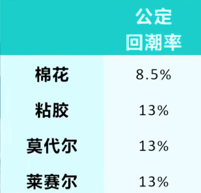 纺织行业,一般用回潮率来衡量面料吸湿能力。所谓回潮率指在一定温度下纤维从空气中吸收水分的量。回潮率越高,说明纤维吸湿性越好。通过回潮率的对比不难发现,许多化纤面料的吸湿性要比棉花要好很多,比如粘胶纤维、莫代尔、莱赛尔这类再生纤维素纤维,这些面料在吸汗透气性上的表现力可以说高于棉材质。
