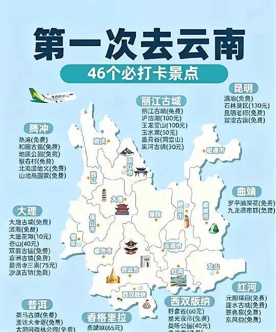 这张图呈现了云南旅游的重要景区,还对景区是否收费、是否免费做了详细标注。打算去云南旅游的朋友可以参考这张图,既能玩得开心,又能节省开支。大家不妨点赞收藏哦!