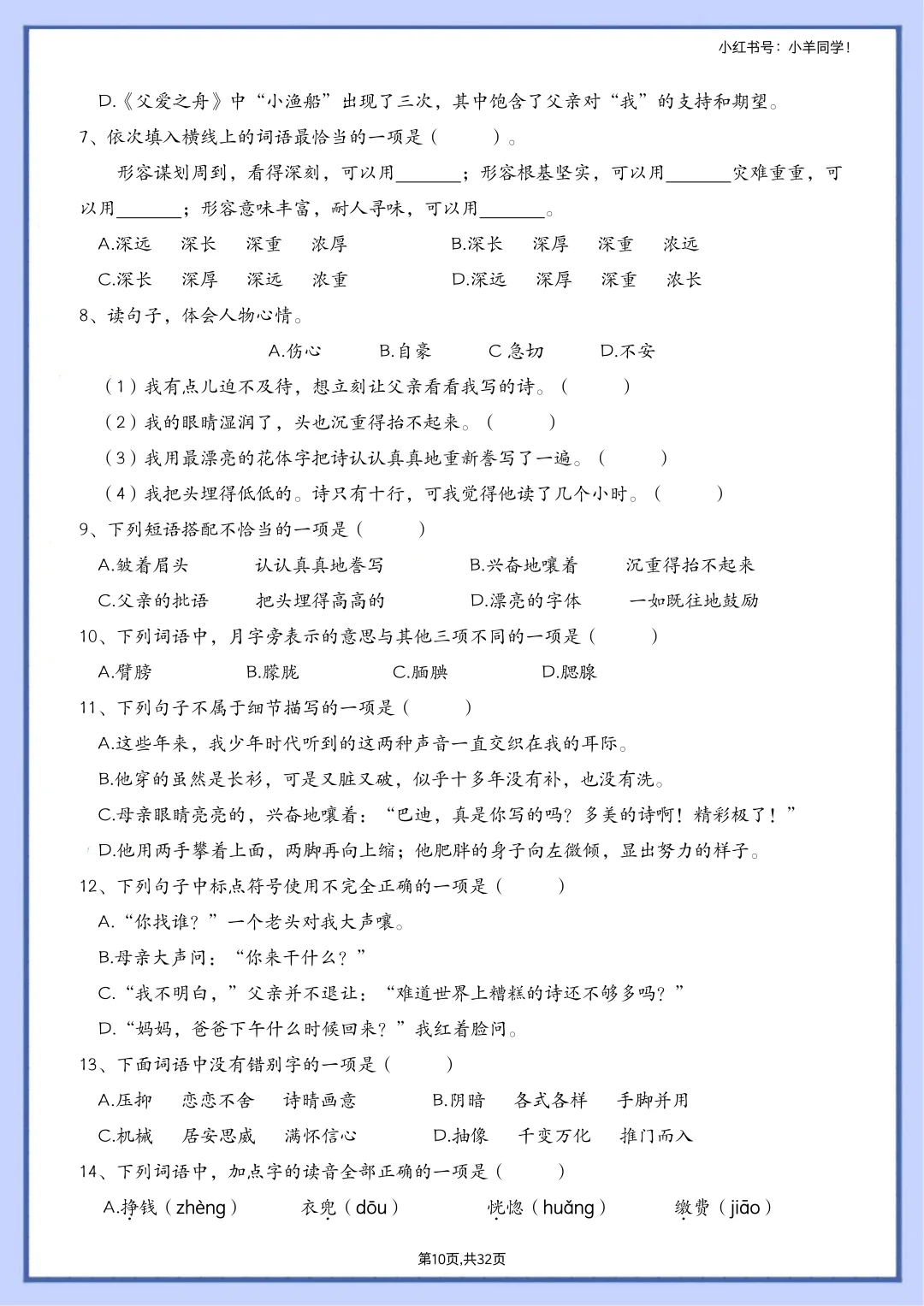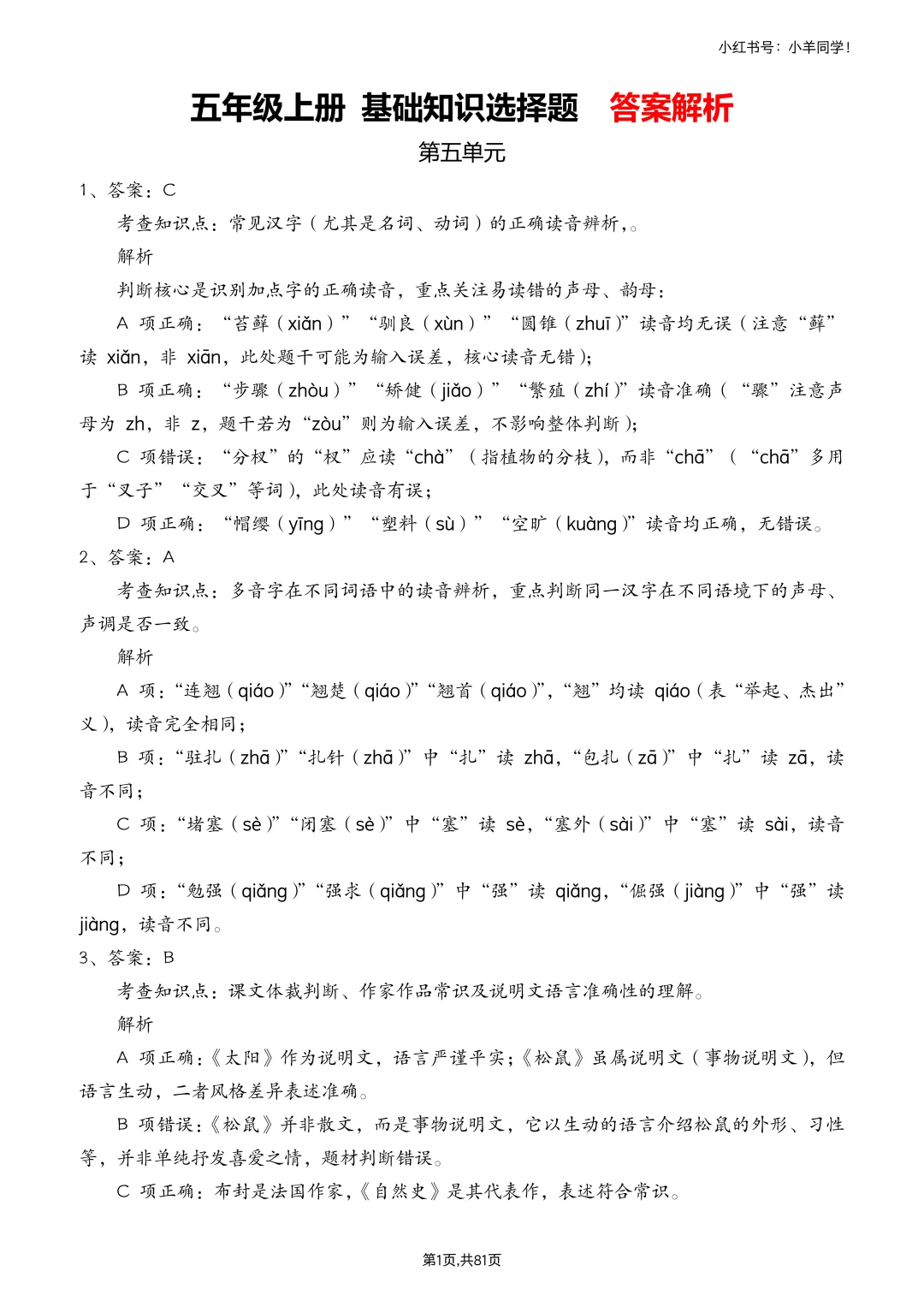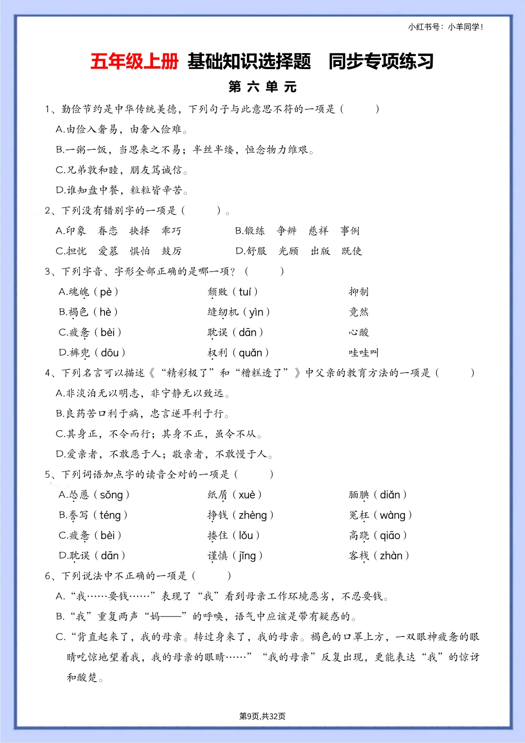 谁懂啊!五年级上册语文基础总丢分?这套选择题专项直接把考点扒得明明白白!
