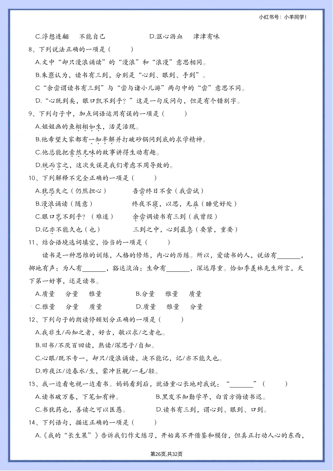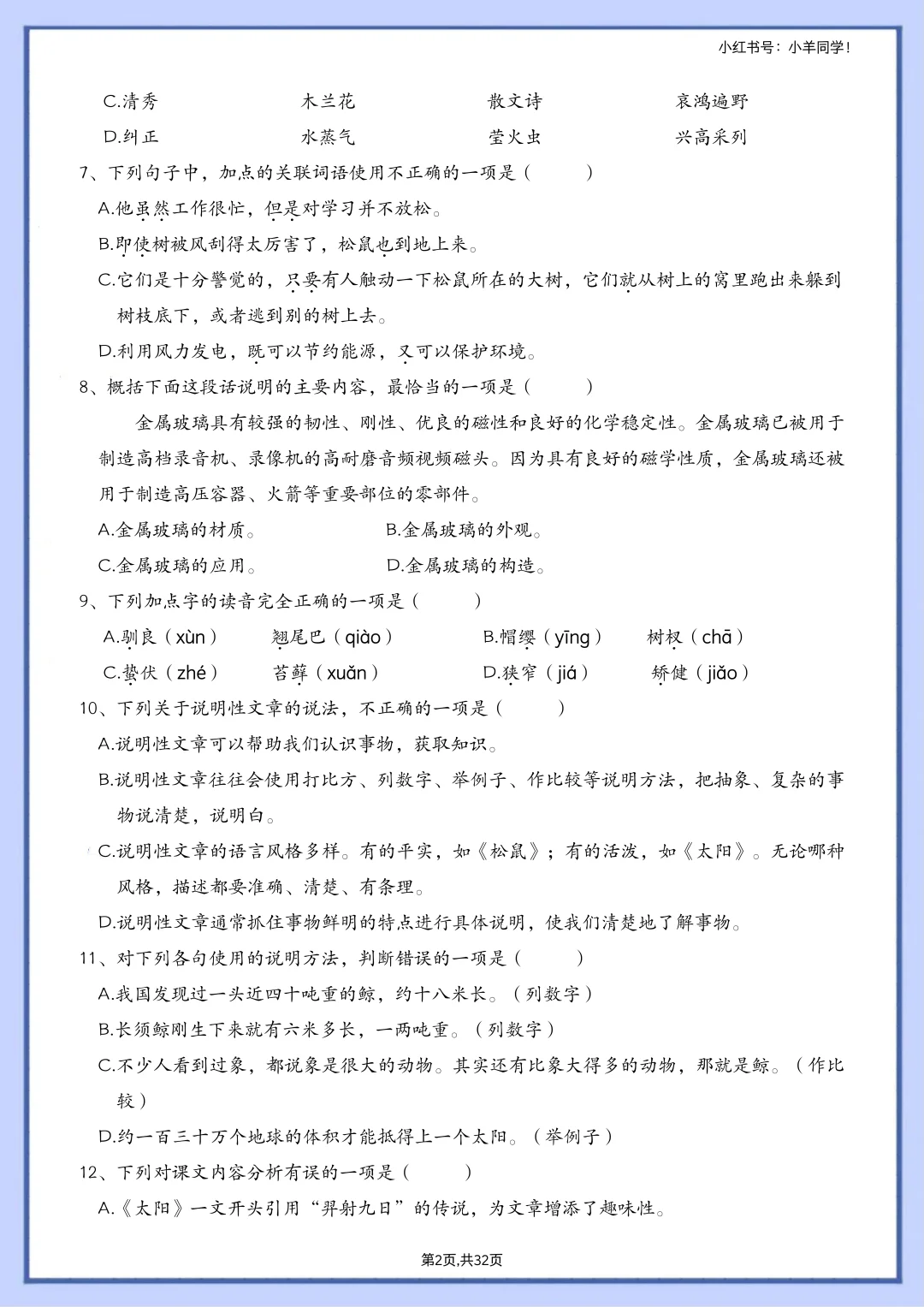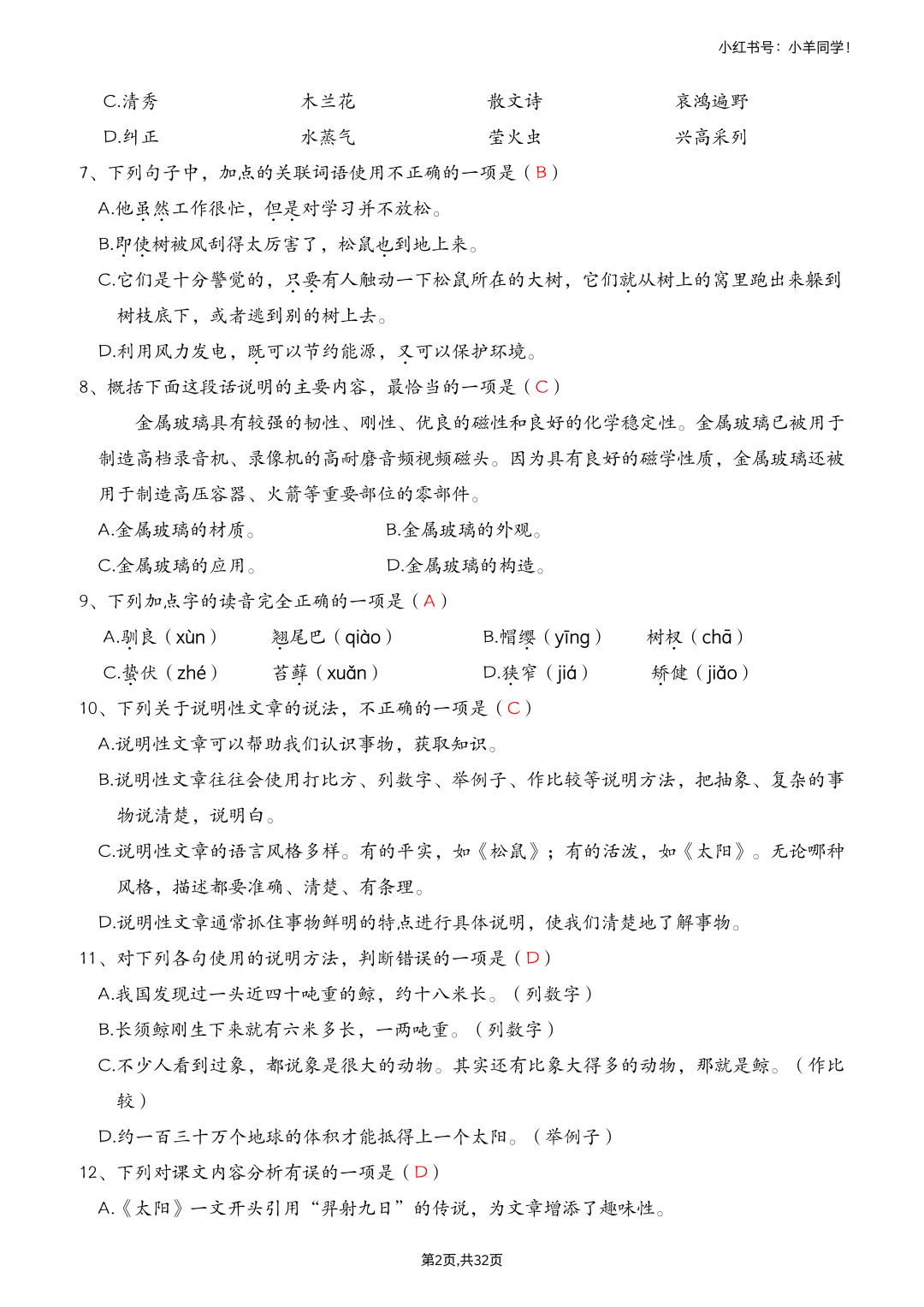 ✅ 答案解析版(157 页):这版真的绝!每道题都有详细解析 —— 错在哪、考点是什么、为啥选这个选项,讲得清清楚楚,娃自己能看懂,家长辅导不用再查资料费脑子!