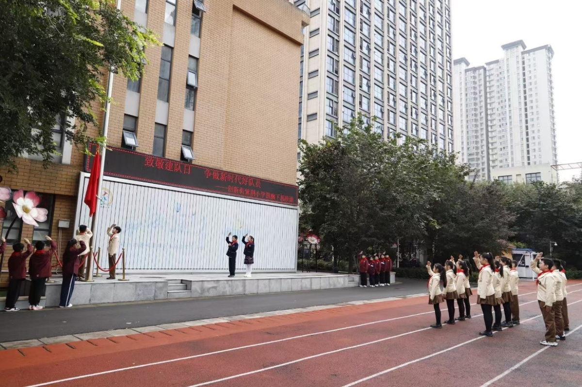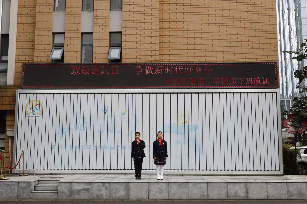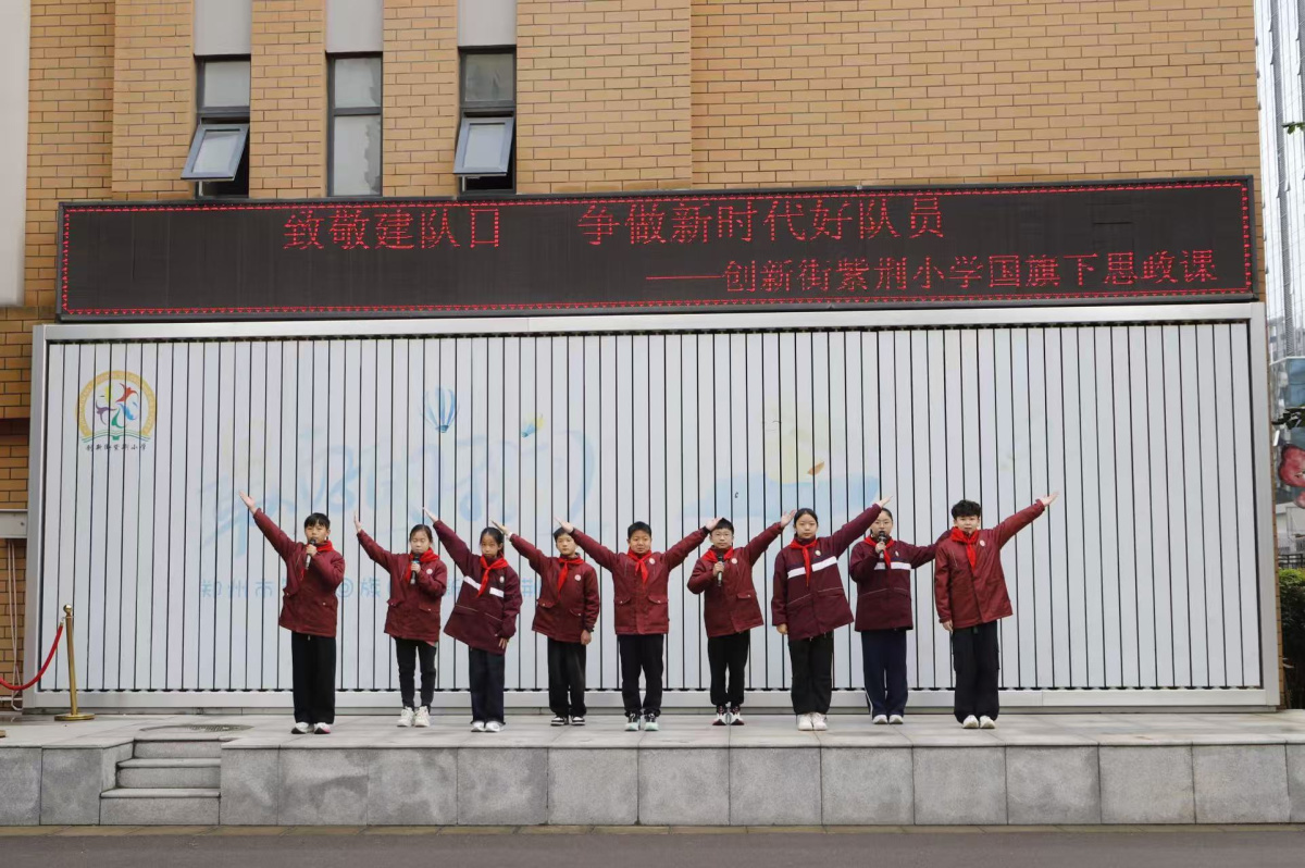 为弘扬少先队精神,引导队员牢记使命,近日,郑州市管城回族区创新街紫荆小学开展了以“致敬建队日,争做新时代好队员”为主题的升旗仪式暨国旗下思政课。