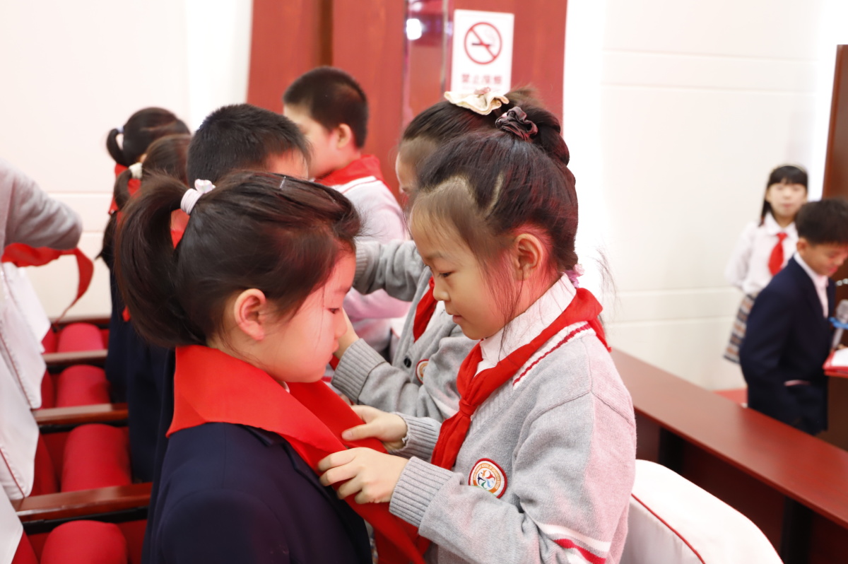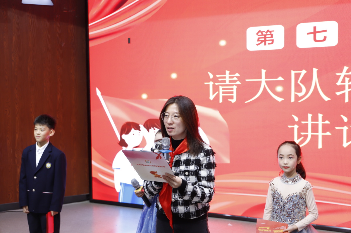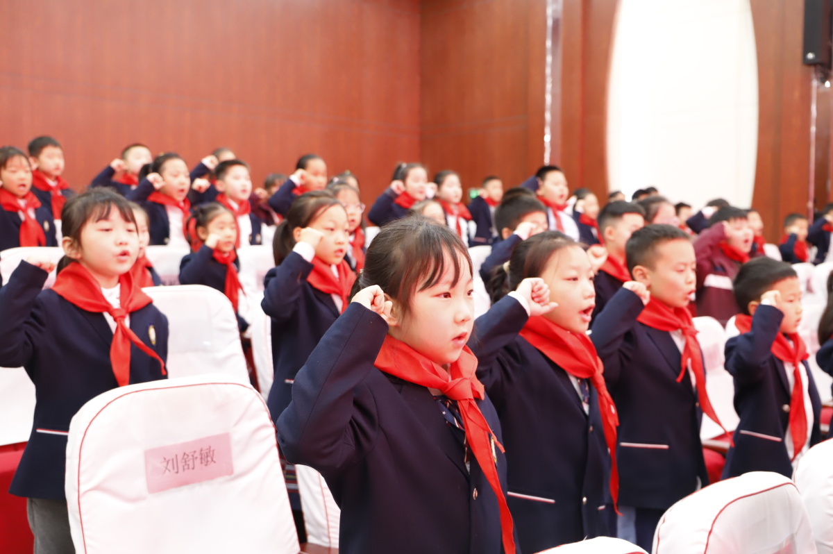 优秀少先队员代表为新队员戴上红领巾,在大队长的带领下,新队员在队旗下庄严宣誓,铿锵有力的誓言表达了对少先队的忠诚和对祖国的热爱。大队辅导员樊老师上台致辞,希望少先队员们传承红色基因,筑牢理想信念,在少先队大家庭中茁壮成长,成为有理想、有道德、有文化、有纪律的社会主义新人。话语中充满对少年一代的殷切期望。