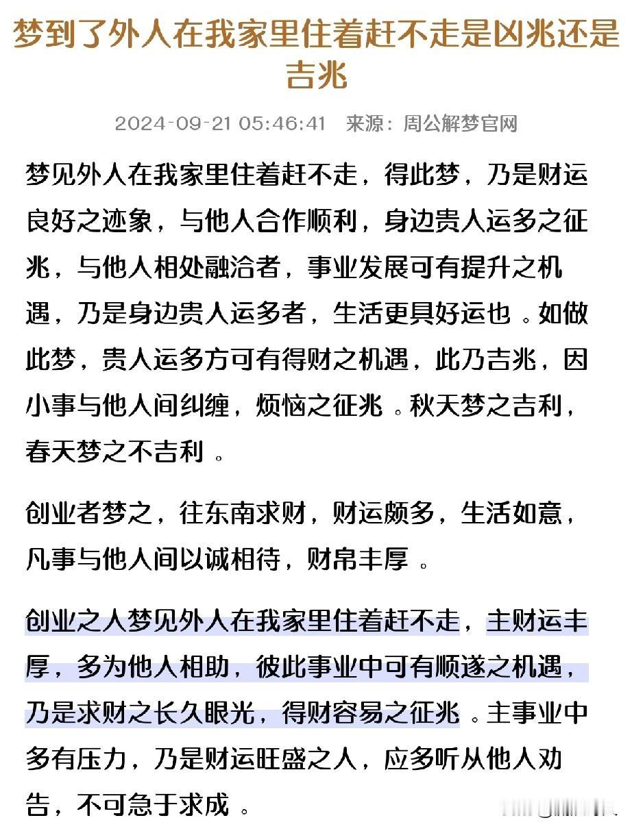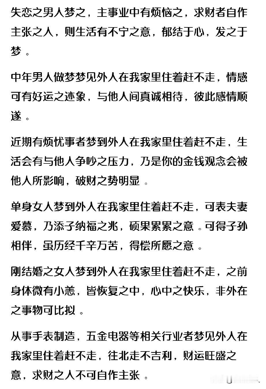 一位朋友说,梦见有陌生人闯进的家里赶不走 特意查阅了一下吉凶,网上有说是“这是转运走顺的征兆”,也有说是“生活、事业、感情上遇到了难题困扰,心理上比较焦虑,需要调节解决。” 的确,遇到难题困扰这一点是说对了,他最近各方面都显得比较不顺,特别是事业,处于失业状态。 至于是不是会慢慢走好运,顺利起来,还有待考证。 不过嘛,这都是玄学的说法,查阅一下也是求个心理安慰,不值得去过于关注和相信。 遇到难题困境,积极应对,勇敢面对才是真正的对的做法。你说是不是呢? 正能量 在现代社会,为什么会有人迷信 社会百态 心理 玄学真的灵验吗?