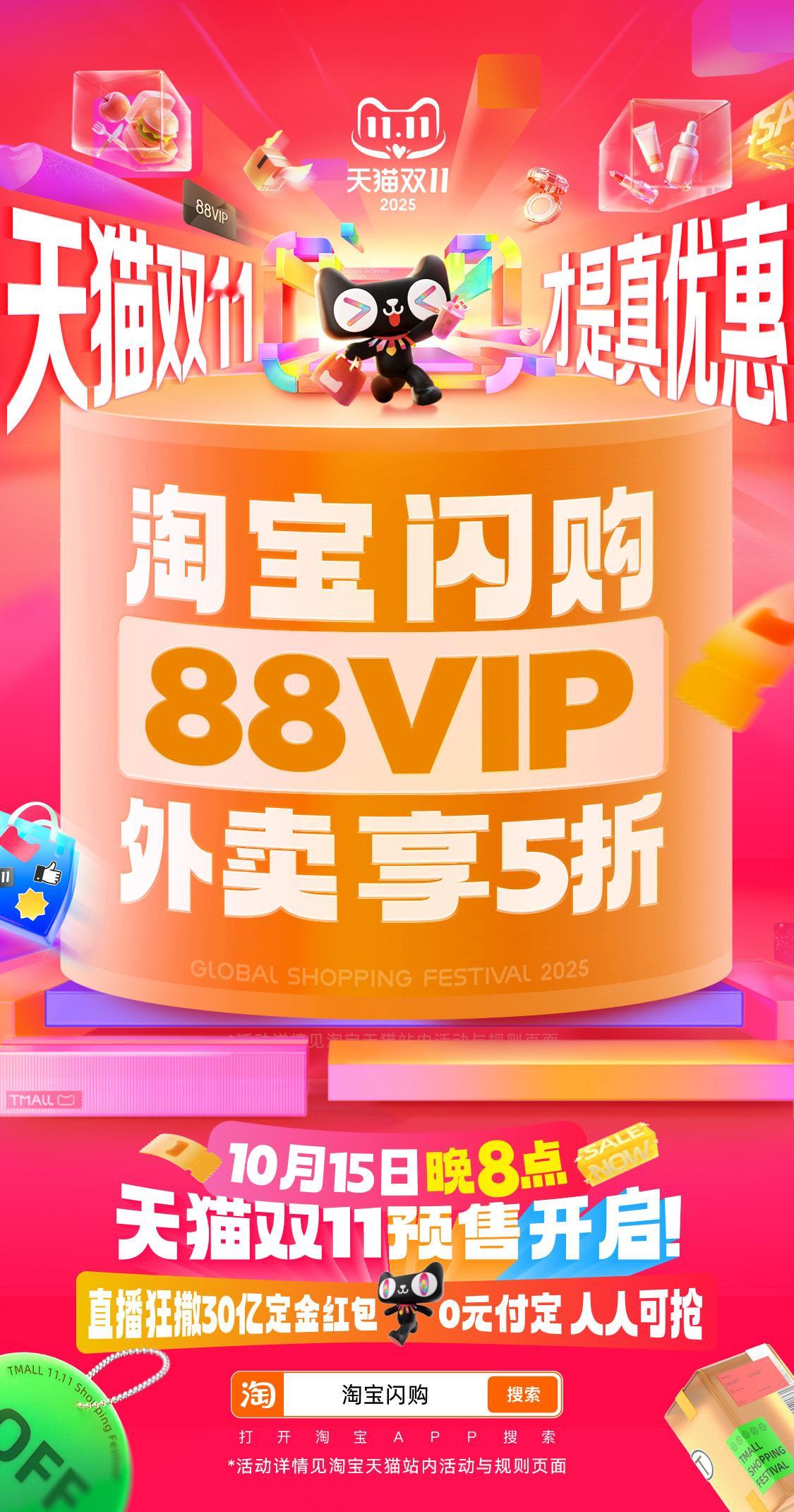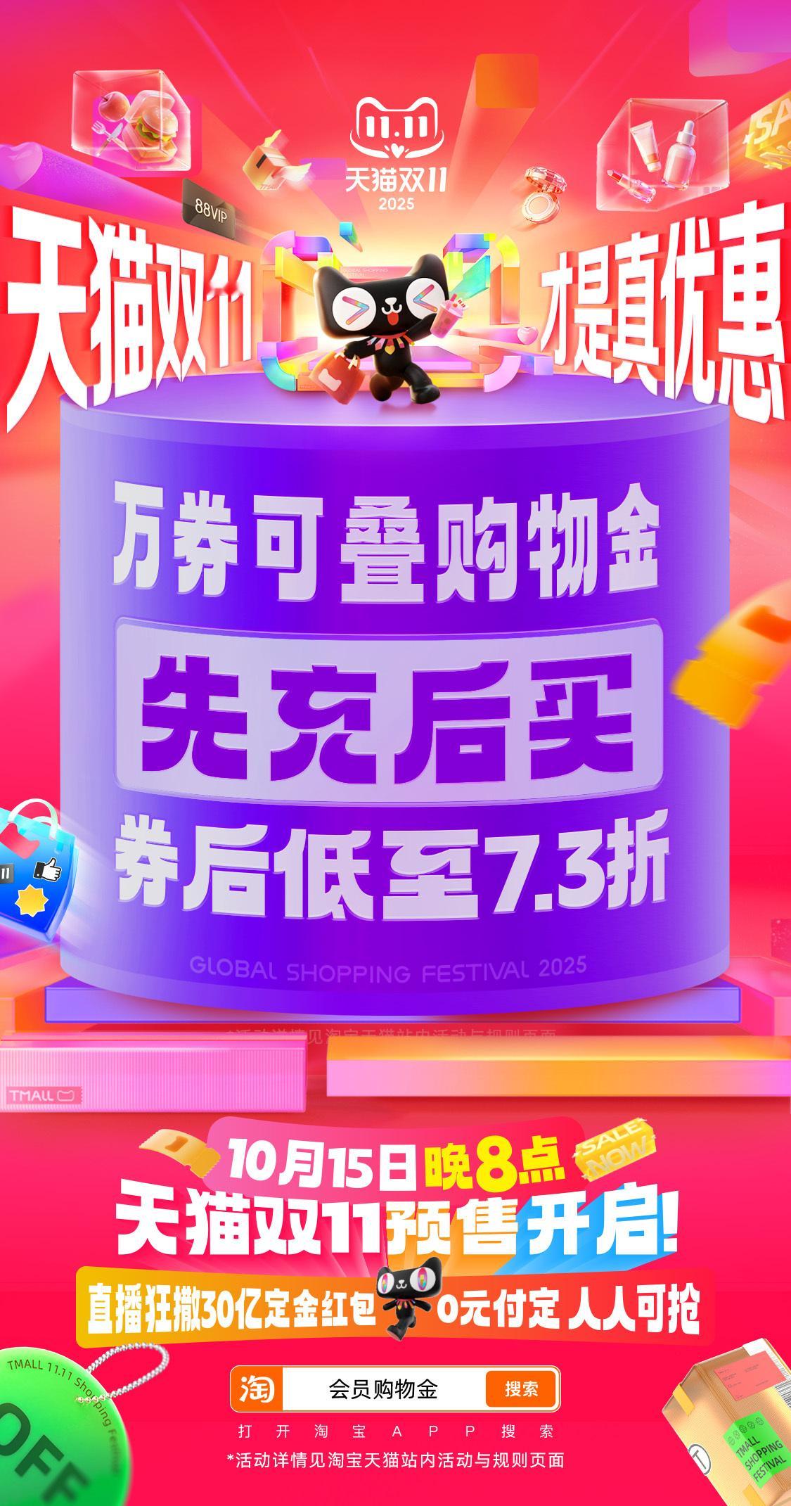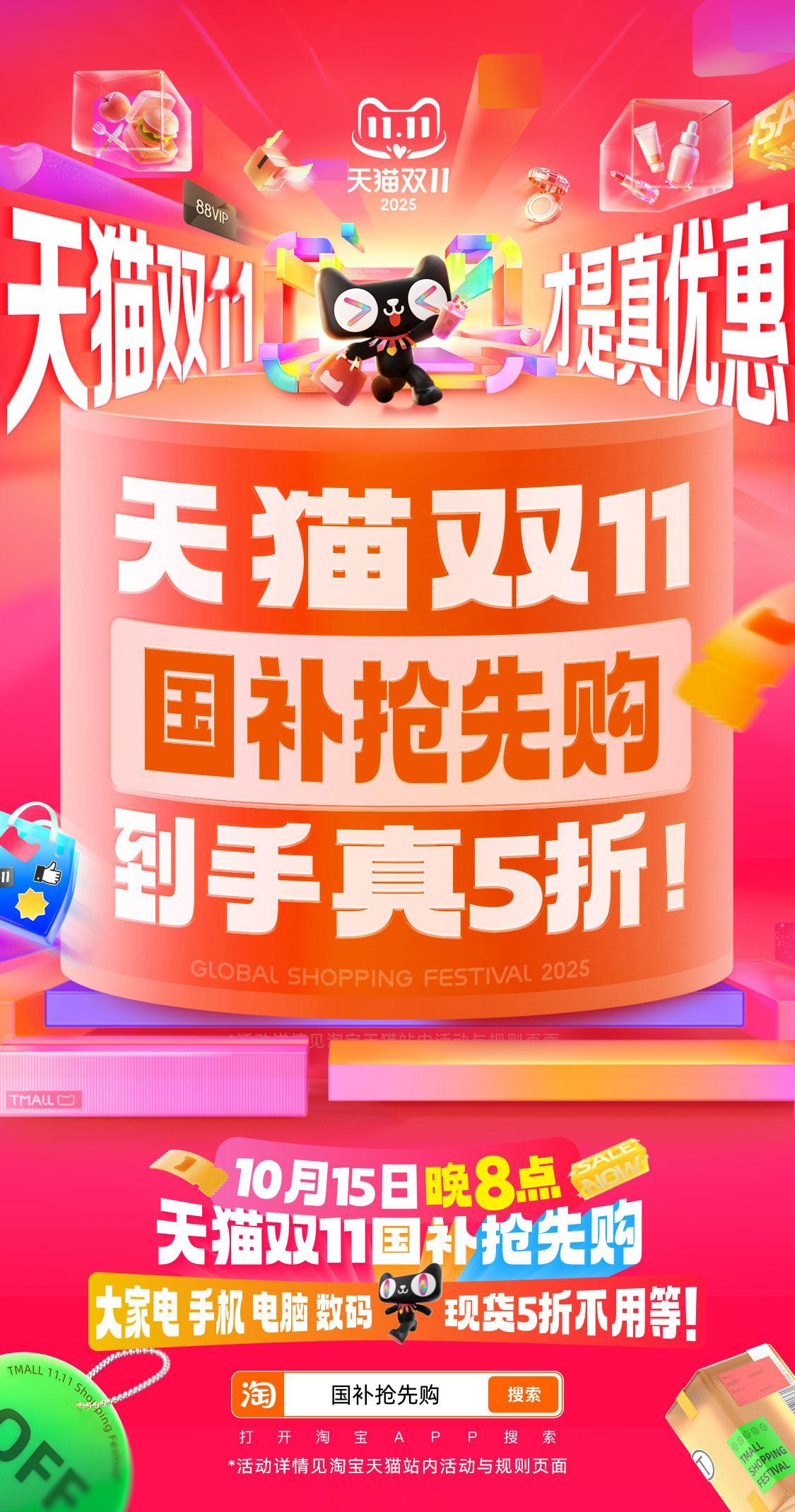 今晚8点天猫双11才是真优惠 敲黑板:天猫双11今晚8点正式开始,大家别错过了!玩法简单直接,立减85折起还可叠史上最大3250元大额消费券包,笔笔都是真优惠!对了,还有国补现货开卖真5折,记得上淘宝搜索【天猫双11预售】提前加购!省心省力又省钱,今晚8点天猫双11预售付定爆款预售今晚都能0元付定啦,家人们速冲!天猫双11才是真优惠
