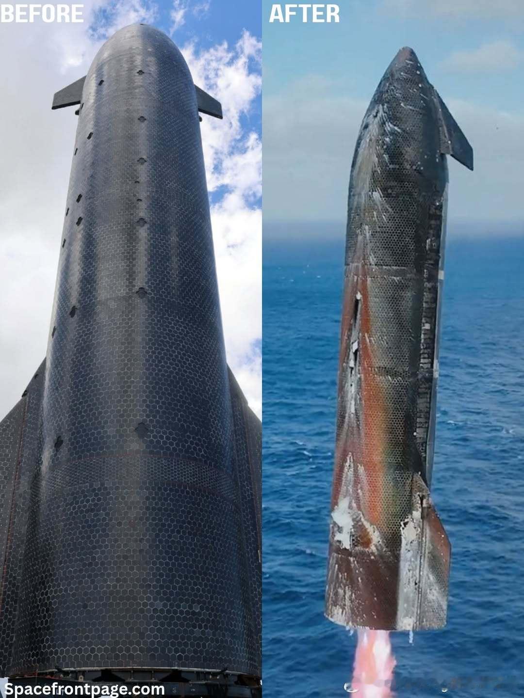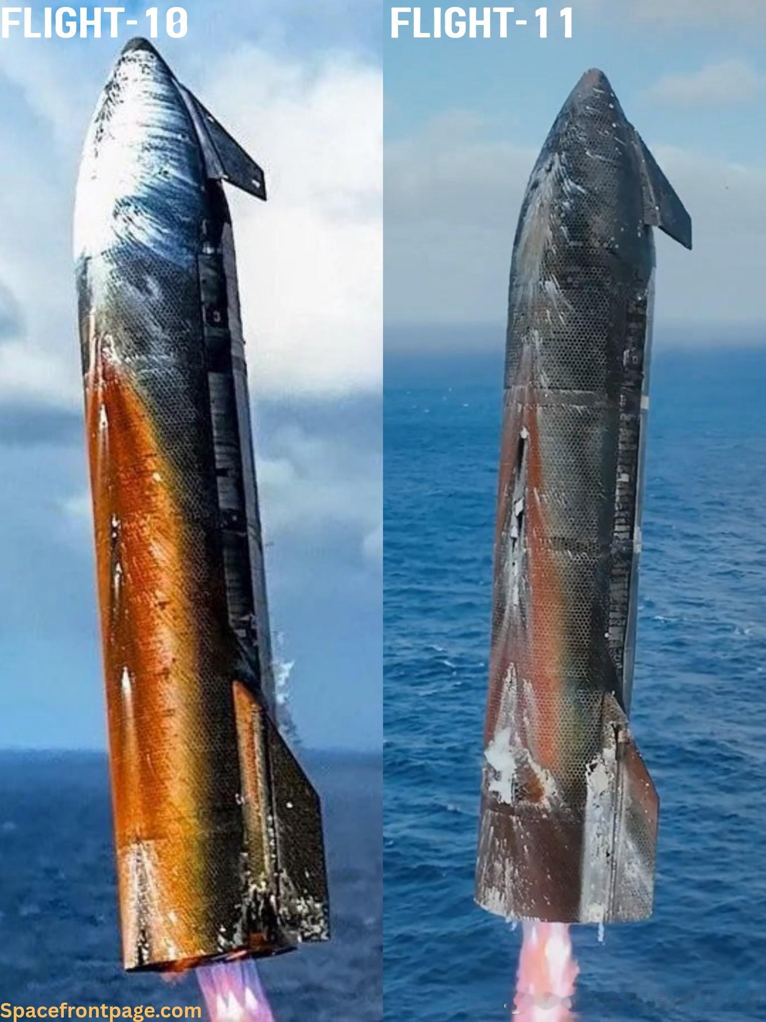 星舰10飞和11飞耐热转烧蚀对比星舰第11次试飞
