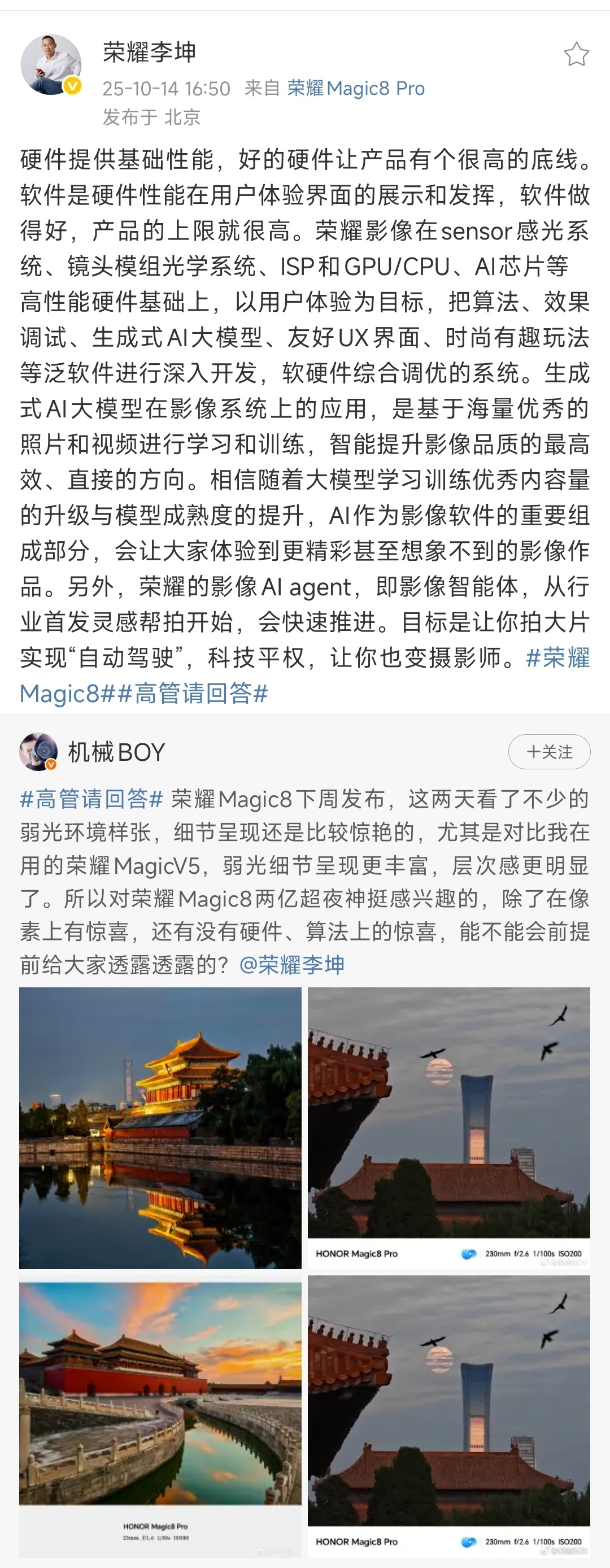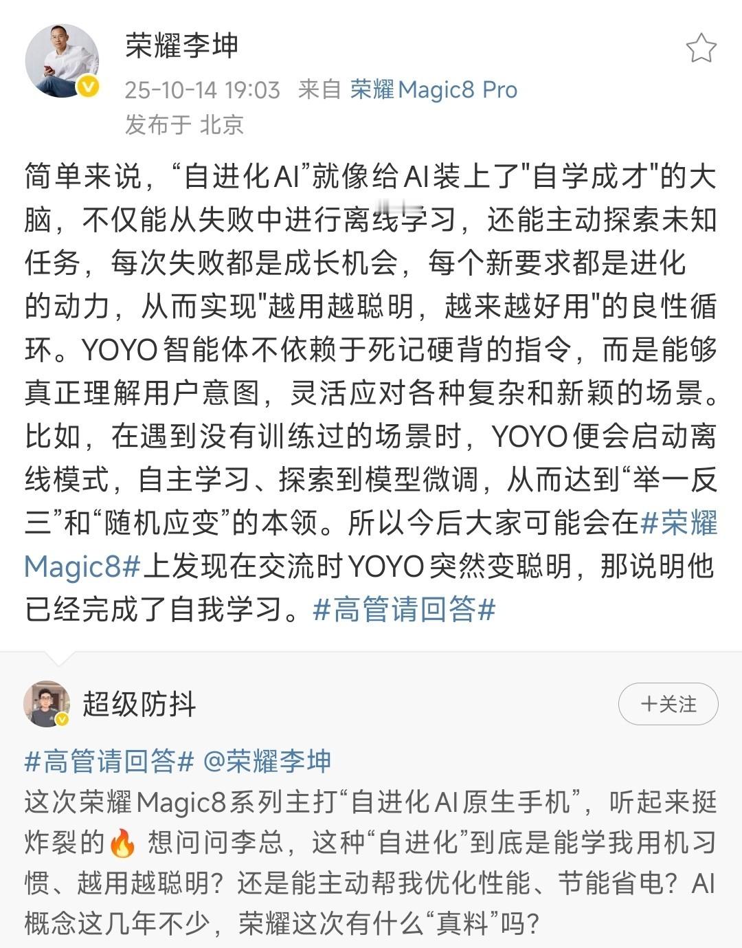荣耀Magic8牙膏挤爆了荣耀Magic8系列的“自进化”体现在细节里!它不是一次性AI功能堆砌,而是能随使用时间不断自我进化的L3级智能体。比如YOYO看见功能,在专属AI物理按键支持下,不仅能识别画面,还能结合上下文提供深度解答,不止被动响应而是主动服务。影像方面,2亿超夜神长焦,能够捕捉到极其细腻的图像细节,在远距离拍摄时也能保持出色。性能更是硬核保障,常温跑分高达428万,确保日常高强度使用也能流畅。如此有温度、有智慧的旗舰,仅4499元起,值得入手!荣耀Magic8价格