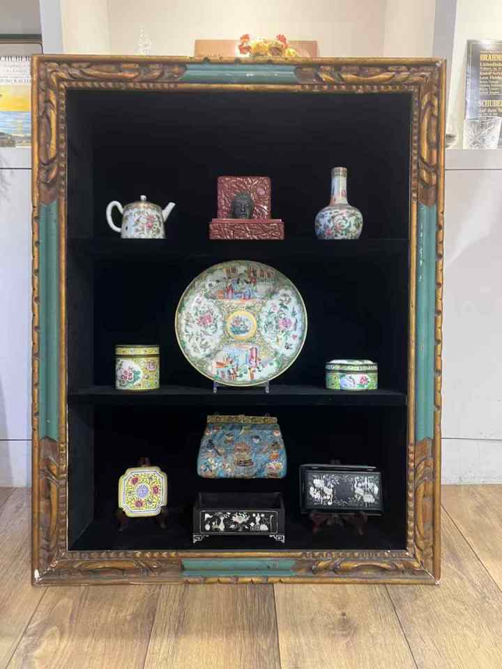 墙上有5个古董画框,卸下了画芯,化作通往“一带一路”文明的5座“时光藏宝阁”。墙上每一个格子里的器物都是丝路的“信物”,从东方到西方,从古典到摩登,在这里轻轻叩响彼此的文明。