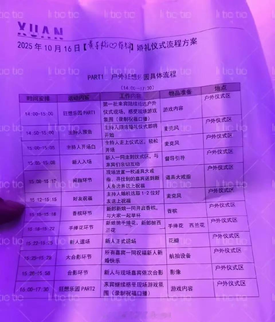 网传黄子韬、徐艺洋的婚礼流程,网友即将见证两人的爱情……