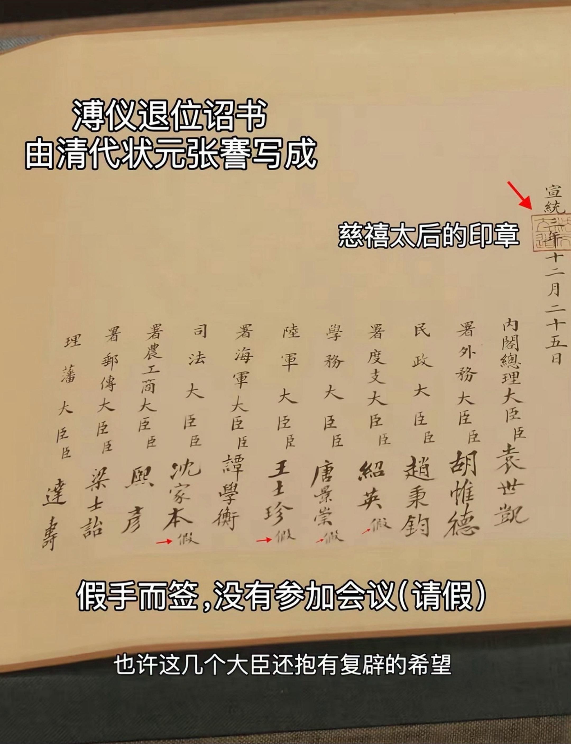 溥仪退位诏书,大清就此覆灭,中国延续了几千年的封建帝制,就此结束