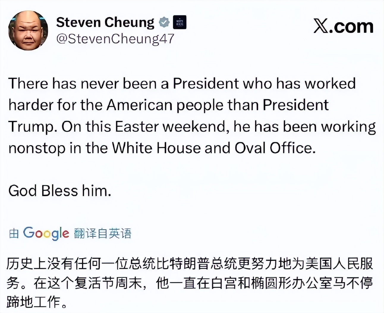 面对铺天盖地的猜测,白宫反应很快,第一时间出来辟谣。白宫通讯主任史蒂文・张明确表示,特朗普整个复活节周末都在白宫椭圆办公室不停工作,一直在为美国人民操劳。白宫官方快速响应账号也在社交平台发文,指责自由派编造阴谋论,还拿之前拜登长期不接受媒体采访对比,试图说明这种猜测毫无根据。