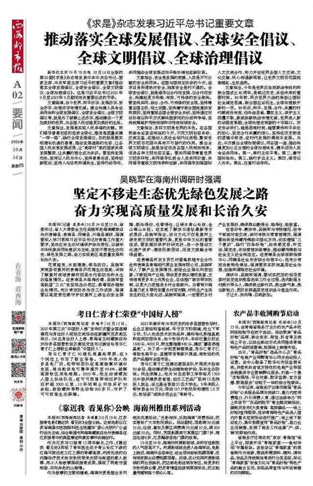 《西海都市报》(2025年10月16日第A2版:要闻)