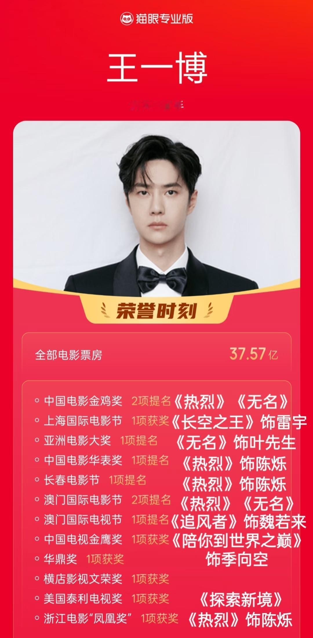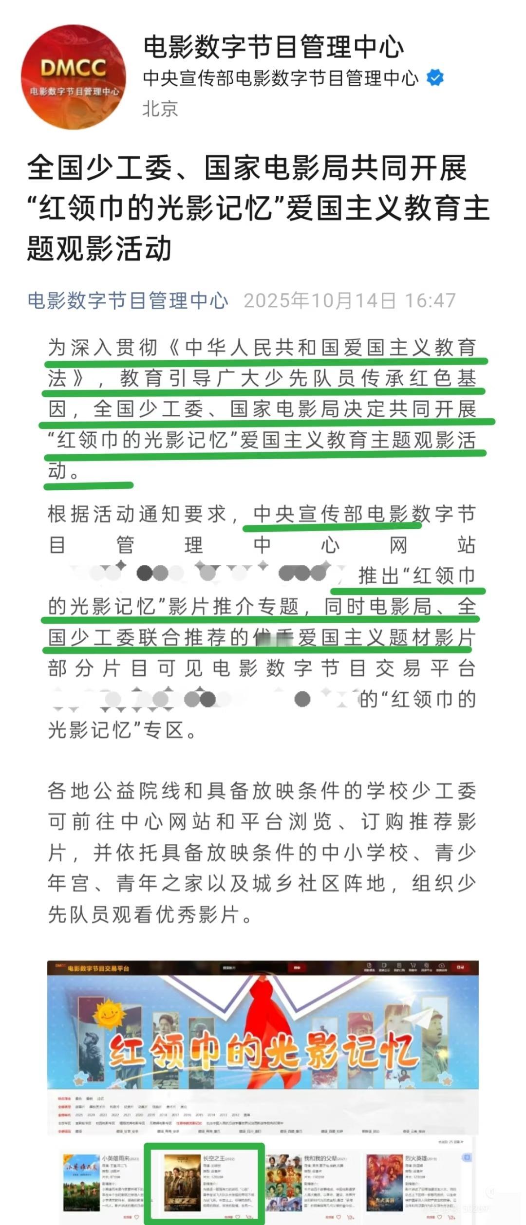 王一博主演的电影《长空之王》含金量还在上升🆙! 中宣部电影数字节目管理中心推出了“红领巾的光影记忆”影片推介专题,王一博主演的电影《长空之王》在几乎都是经典“老片子”的推荐影片中,是该专题唯一一部由当代青年演员一番主演的作品。 每一部作品都掷地有声,每一部作品都长尾效应惊人,“王一博严选,部部精品”,果然名副其实[赞]。 王一博