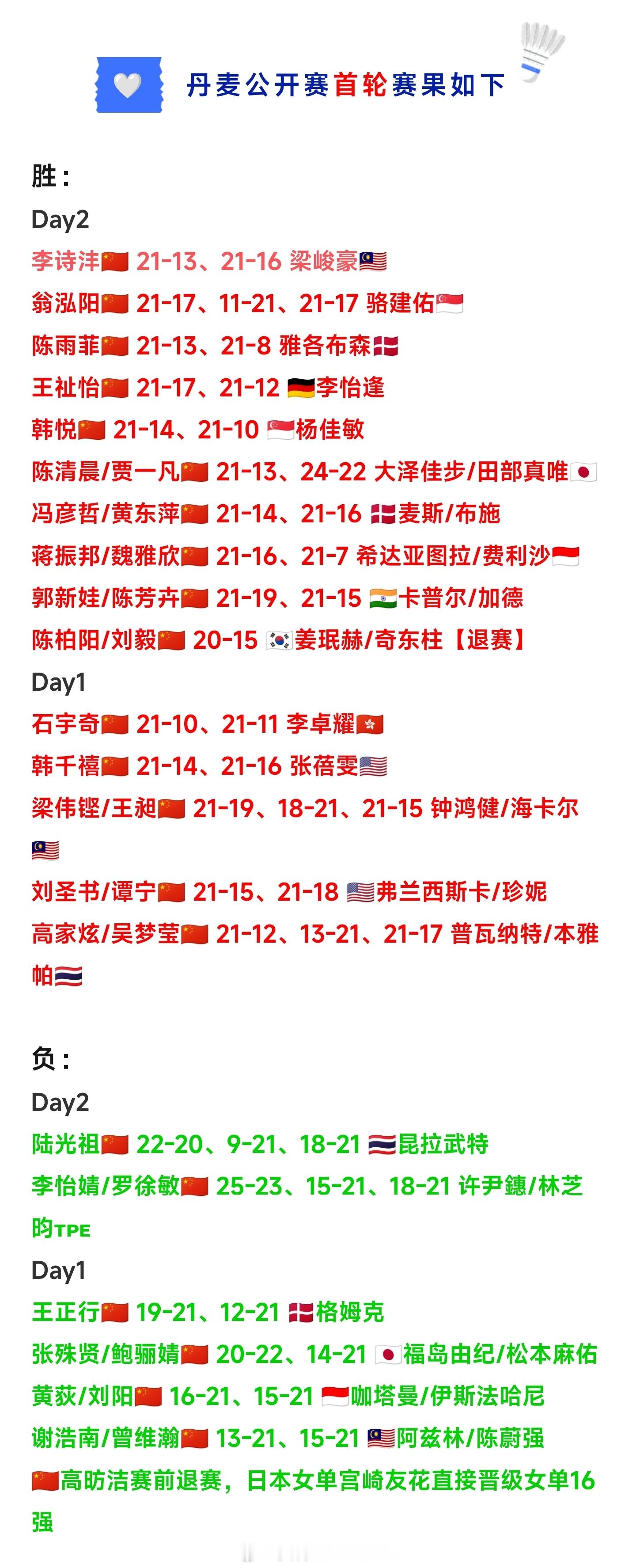 国羽🇨🇳首轮赛果(图2:15胜7负)