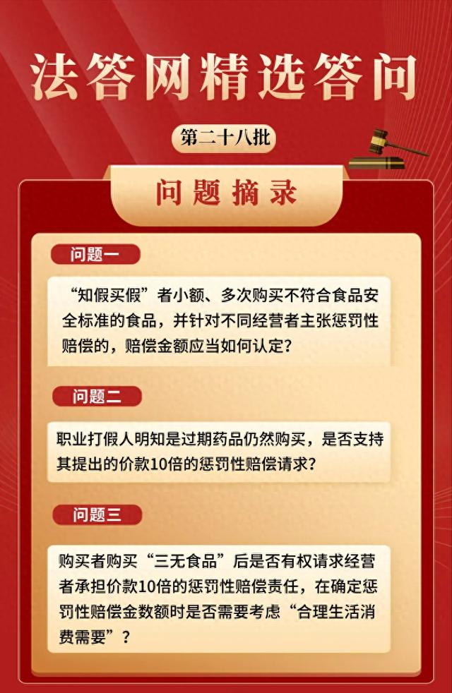 为方便您快速阅览,详细了解法答网精选答问内容,网事君精心制作“法答网精选答问”合集,点击图片后直通问题详解。本次更新第28批——食品药品惩罚性赔偿专题,后续问题会持续推出,敬请关注。