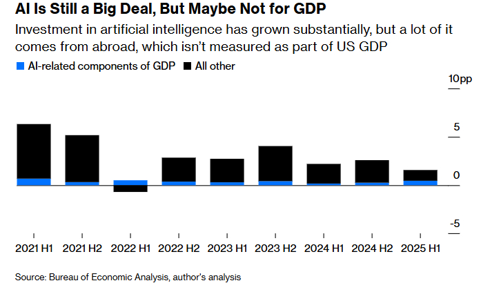 然而,如果将AI相关进口的大幅增长剔除,这一贡献就会降至0.5个百分点。