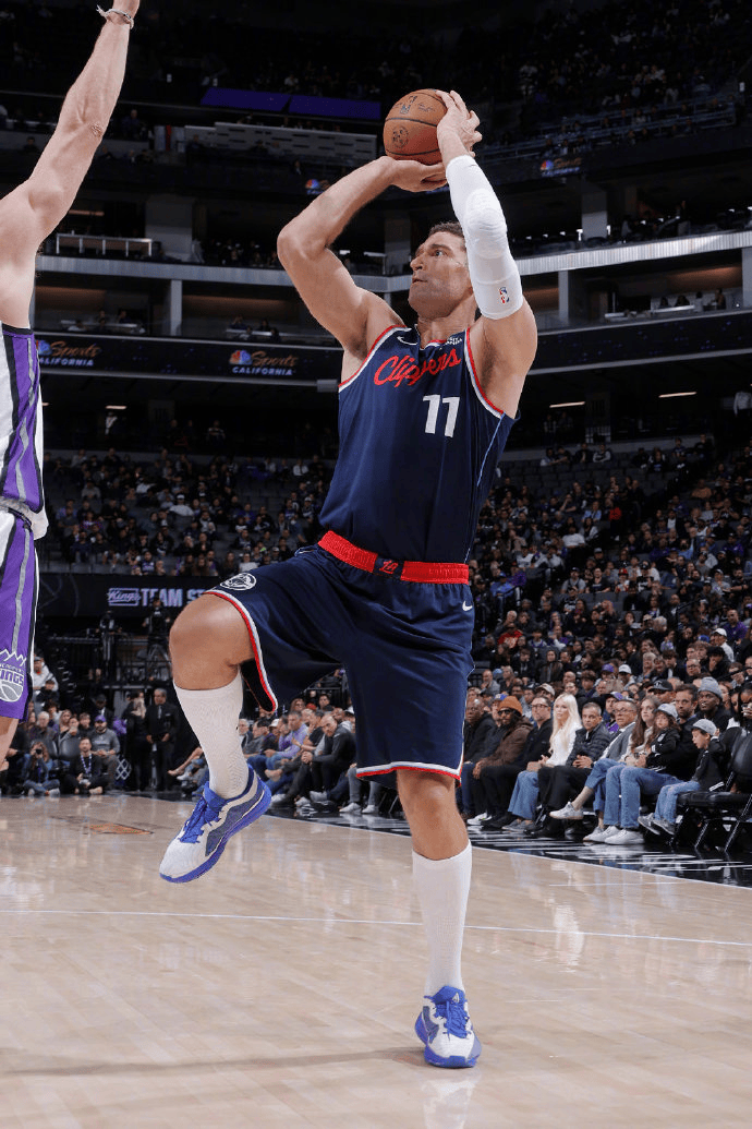 赛中,快船社媒晒出一张洛佩斯赛场金鸡独立照片,并配文道:“这招怎么守?”