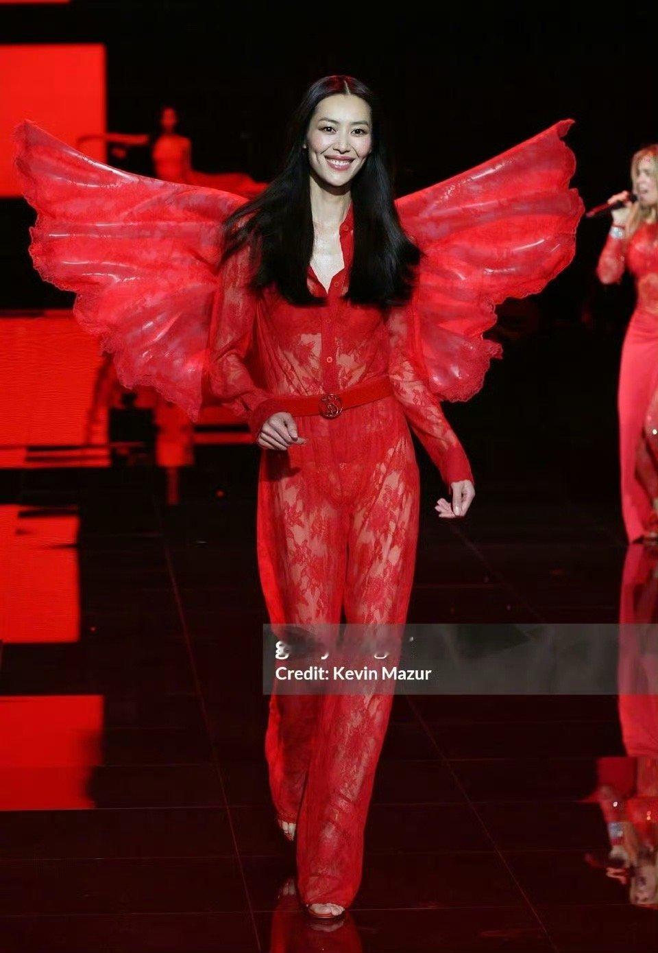 刘雯第二套 大表姐维密双杀!前有红裙带风,后有冰晶闪耀,两套LOOK各有惊艳,超模气场太能打!