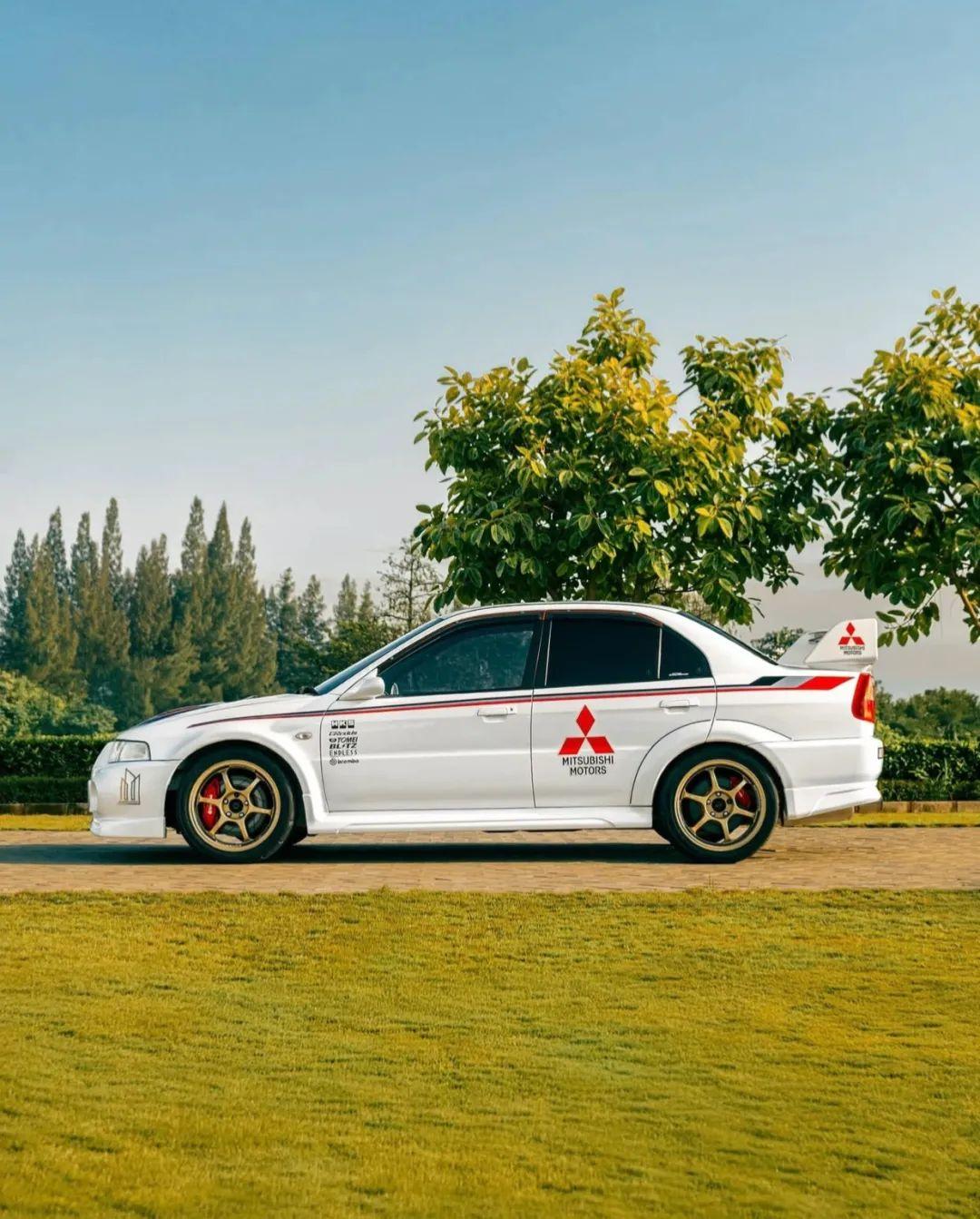 Mitsubishi Lancer Evolution VI '1999–2001,第六代Evolution是整个家族在赛场上最辉煌的时刻!这代车外观有变化。自第四代开始使用的大雾灯的面积在第六代有所减小,并被移至保险杠两侧,这种做法的理由是提高引擎零件的撞风面积,这些做法除有可能提高引擎效率以外,跟第六代一开始就强调的引擎耐性是相辅相成的。双层式车尾扰流器也是六代的特点之一。