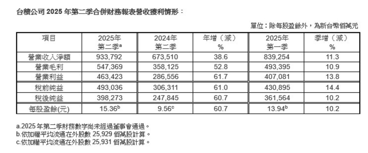 今年第一季度,台积电营收8392.54亿新台币;净利润3616亿元新台币,毛利率58.8% 今年第二季度,台积电营收9337.92亿新台币,净利润近3983亿新台币,毛利率58.6% 今年第三季度,台积电营收9899.2亿新台币,净利润4523亿,毛利率59.5% 今年前三季度,台积电净利润12122亿新台币,当前约合人民币2820.8亿元人民币,约每天净收入10.3亿元人民币
