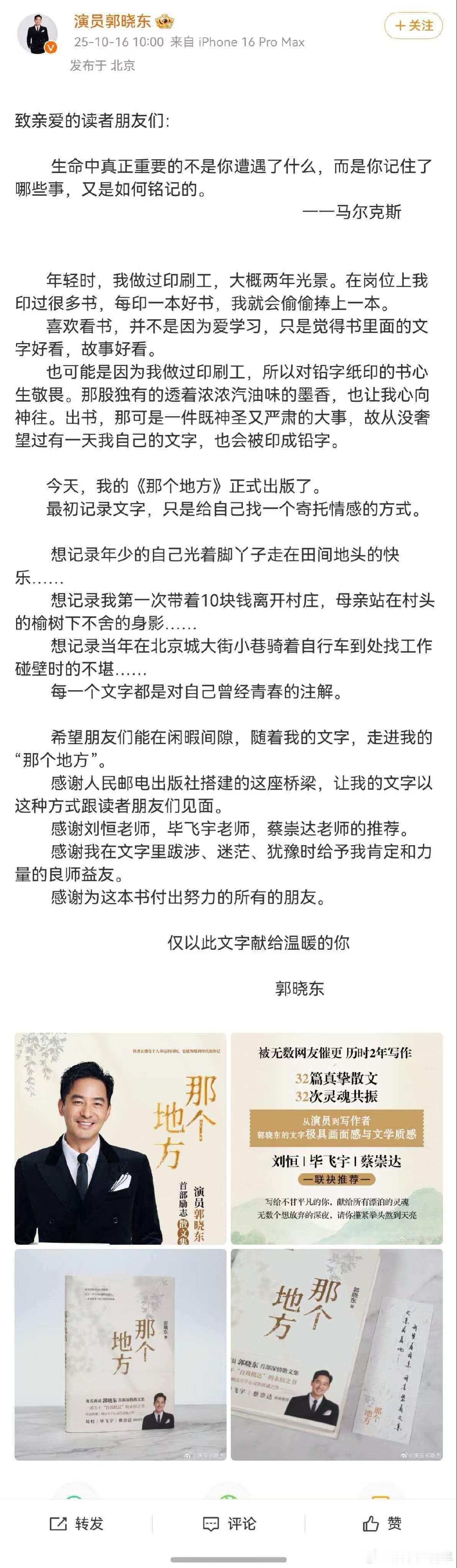 小巷人家打call郭晓东新书 不仅是庄老师数学的粉丝,更是郭晓东新书《那个地方》的忠实读者。读他的散文,仿佛走进了每个小巷,拾起那些属于我们自己的岁月与故事。