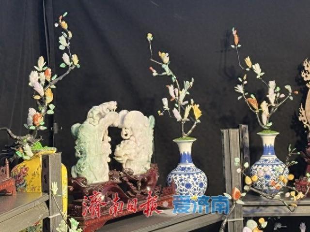 10月16日,第十届英雄山文化市场珠宝玉石展热闹启幕,展会上以翡翠为原料雕琢的花卉作品,凭借巧夺天工的工艺与温润雅致的质感,吸引了不少顾客的目光。