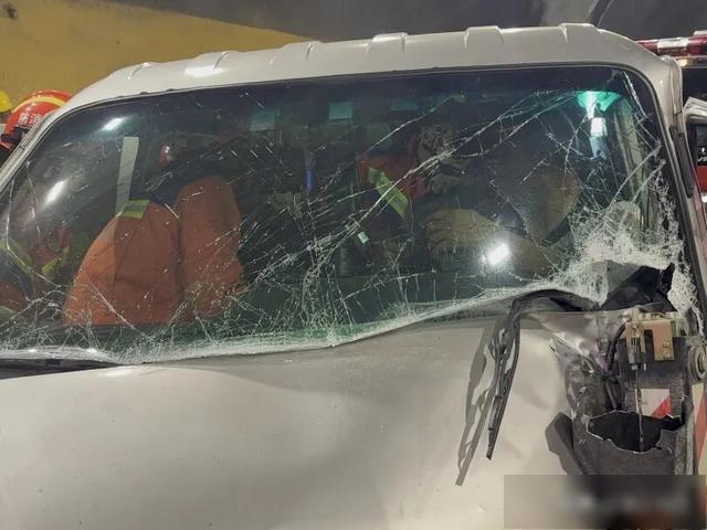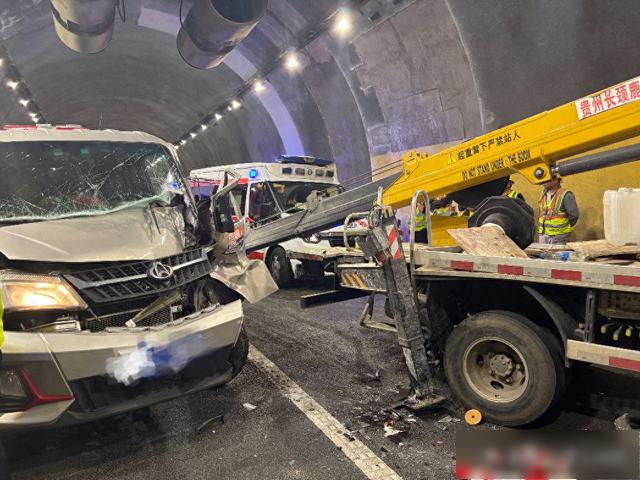一辆面包车与一辆在隧道内施工的吊臂车追尾