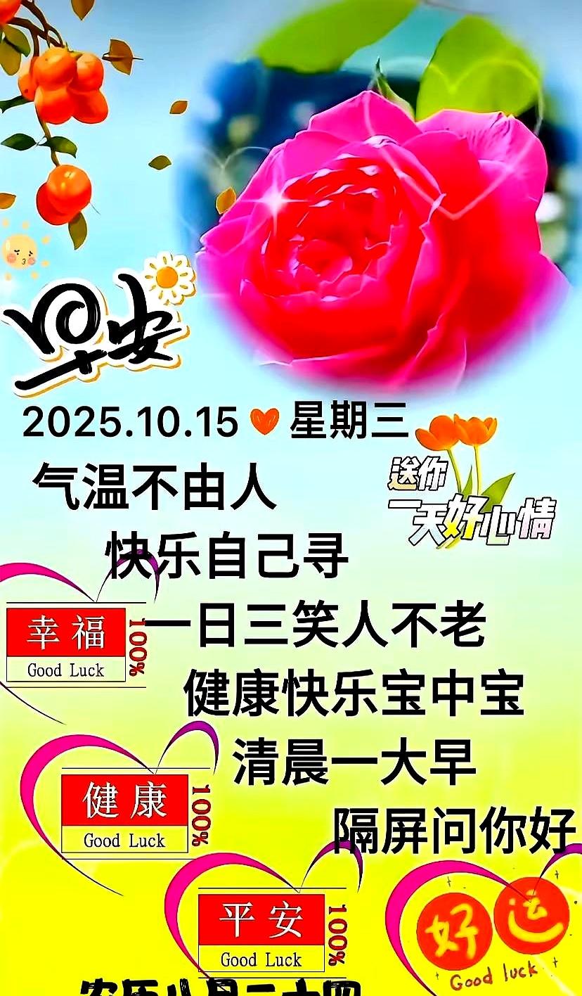 今早全国开启“穿衣盲盒”模式! 北方晨温跌破12℃,大爷晨练套上薄外套;南方街头金桂开得正疯,甜香能飘三条街,温差超10℃的秋天,真是穿毛衣和单衣的人能在街头擦肩而过。 今天是2025年10月15日周三,乙巳蛇年八月廿四,离霜降只剩9天。 气象站数据显示,全国大部晴到多云,昼夜温差普遍12℃左右,难怪@窗边的多肉 拍视频吐槽:“早上裹毛衣出门,中午热得脱成单衣,秋天就是个‘乱穿衣大赛’!” 晨跑的@老周的晨跑日记 也发来现场:“公园遇着好几位打太极的,都说这天跑步不喘,比伏天舒服十倍!”厨房阿姨李姐更实在,晒出给孙子煮的银耳梨汤:“秋分后就得润着来,别等燥得嗓子疼”——这汤确实对症,银耳润肺生津、梨润燥止咳,正是秋燥天的“黄金搭档”。 楼下张大爷遛弯时念叨:“天凉了少熬夜,早上晒晒太阳比啥补药都强”,老话讲的“秋日养生三件事:早睡、润燥、常微笑”,现在听正应景。 还有9天霜降,早晚记得揣件薄外套,出门闻桂香,回家喝热汤,日子就得这么舒坦。