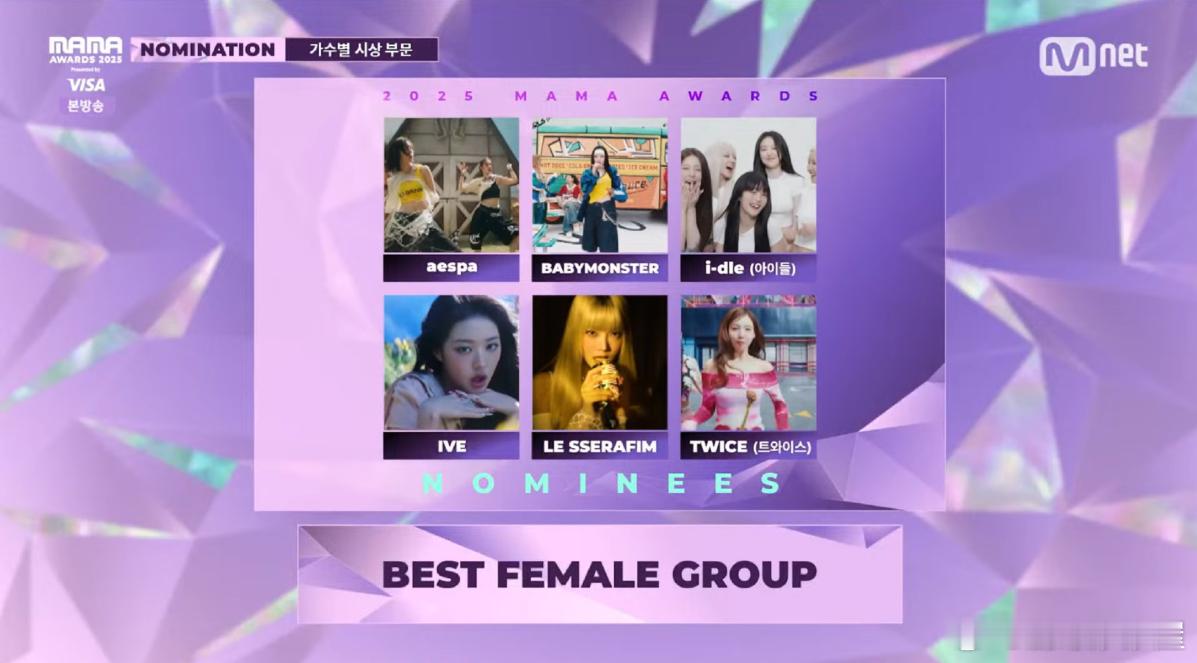 最佳女团:aespa、BABYMONSTER、i-dle、IVE、LESSERAFIM、TWICE