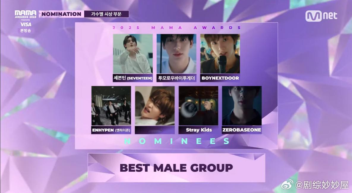最佳男团:SEVENTEEN、TXT、BOYNEXTDOOR、ENHYPEN、RIIZE、stray kids、zb1