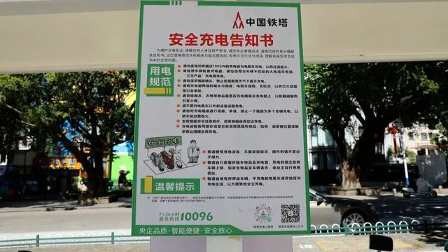 走进各充电桩,可以清楚地看到每个充电杆上都安装了多个防雨插座,可同时满足多辆电动自行车的充电需求,旁边的公告牌上还清晰标注了收费标准、服务热线操作流程和应急处置等信息让人一目了然。