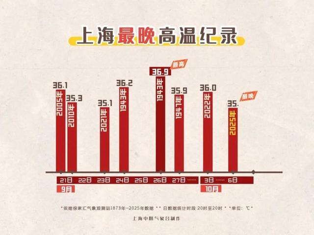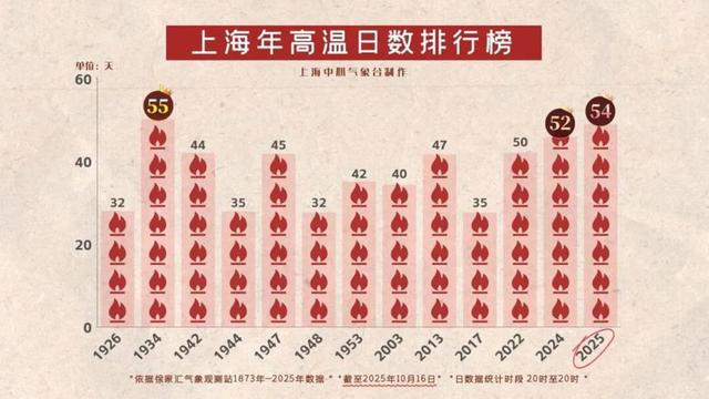这个夏天,真的太长了。从5月12日入夏至今,上海的夏天已持续整整158天——这是徐家汇气象站有记录以来第二长的夏季。在此期间54个高温日,创下1873年以来历史第二多的纪录;就连10月6日中秋佳节,气温也冲上35.0℃,刷新了上海最晚高温日的历史极值。