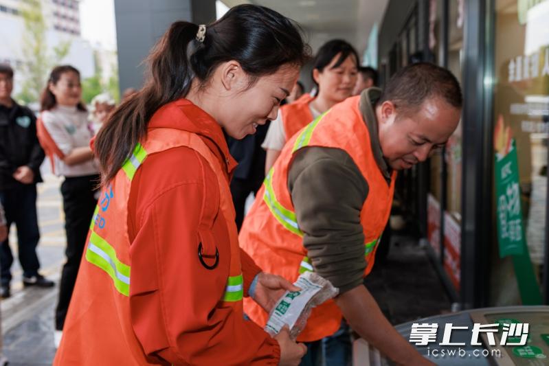 “您看,用微波炉加热剩饭时,把饭盒盖留条缝,热出来的饭更松软,还能避免溅油。”活动现场的“技能赋能微课堂”专区,志愿者小张正耐心向环卫工人王阿姨演示“简易热饭技巧”,并递上印着“粮食节约+健康饮食”知识的主题卡片,卡片背面的湖南省志愿服务信息平台二维码,还帮助王阿姨找到了附近的志愿活动报名入口。