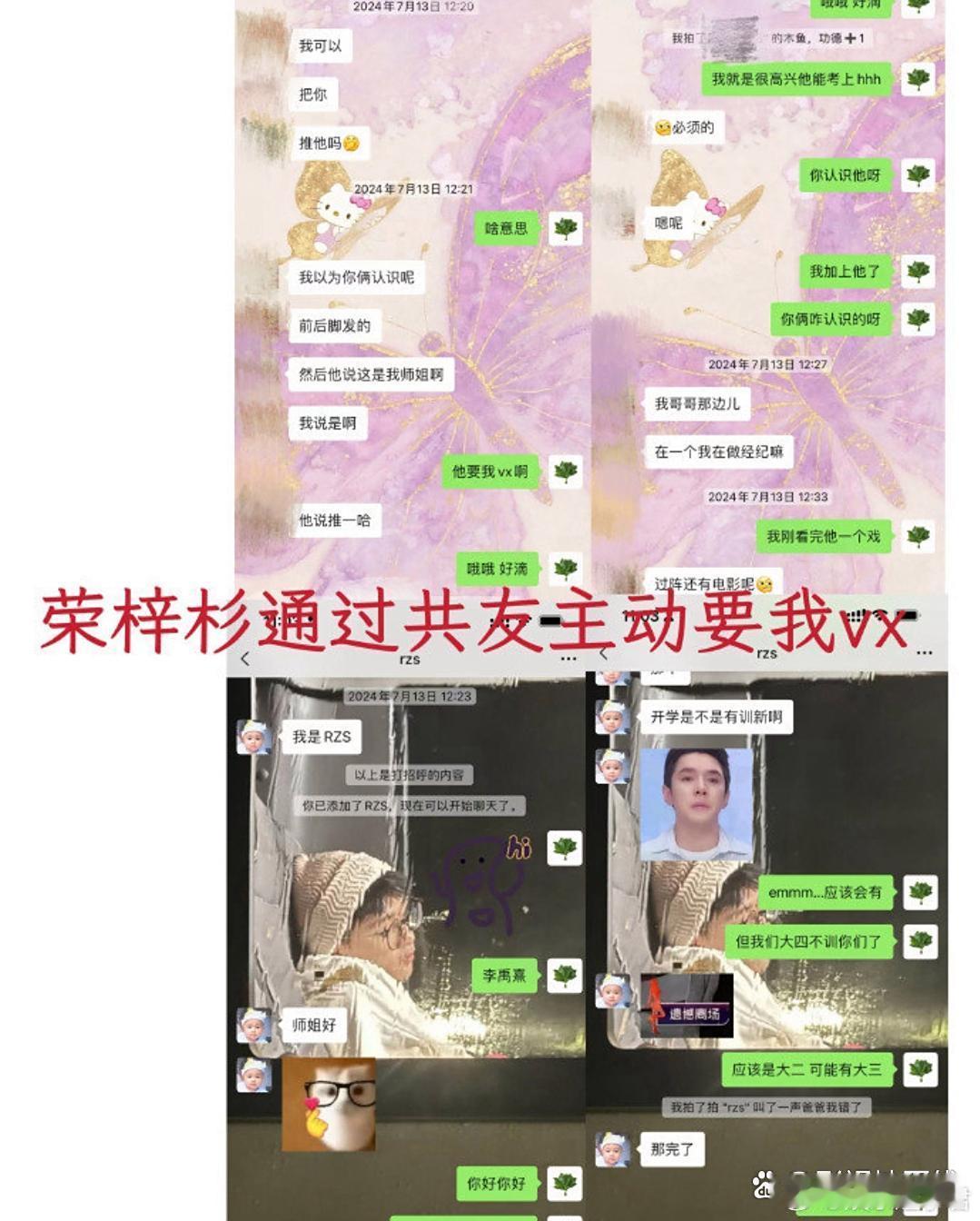 李禹熹公开和荣梓杉聊天记录李禹熹熹再发文,晒出与荣梓杉聊天记录,表示:“看到你们的回应,我真的很难过。其实我只是想要一个态度,为什么还要对我造谣呢?”李禹熹称荣梓杉通过共友主动要她微信,两人2024年8月20日确立关系。今年9月李禹熹不想联系了,荣梓杉拿她私密照当头像逼回消息。