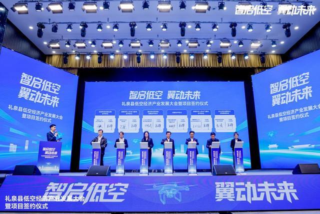 阳光讯(记者刘金通讯员全金兴文/图)10月16日,智启低空·翼动未来——礼泉县低空经济产业发展大会暨项目签约仪式成功举行,行业主管部门负责人、领域内专家学者、产业链领军企业代表齐聚礼泉,共探低空经济发展新趋势,共绘产业高质量发展新蓝图,助力一批优质资源、创新技术在礼泉落地生根。此次活动集中展示了该县在抢抓低空经济新赛道、培育新质生产力方面的系统布局与初步成果,标志着礼泉在推动区域经济高质量发展上迈出了关键一步,为县域低空经济发展注入了强劲的“低空动能”。