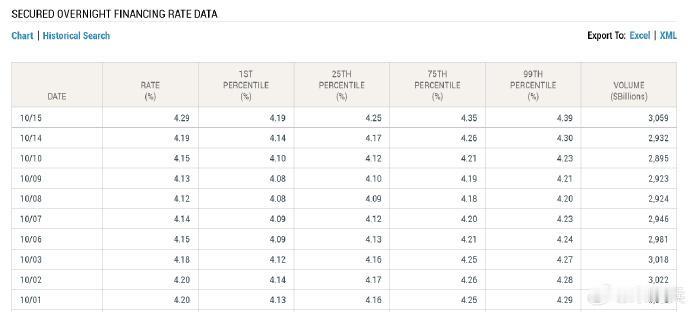 刚公布的10月15日的SOFR利率已跳升到4.29%(正常值应该为4.08%),已达到心肌梗塞的程度!10月16日常备回购SRF更是高达83.5亿美元,比15日67.5亿还要高! 我们在上周六10月11日就指出美联储必然很快退出缩表(视频将于明日上线),今天看到新闻说鲍威尔宣布未来几个月美联储将退出缩表。我们认为,以当前美国货币市场流动性的恶化速度而言,鲍威尔没有几个月的奢侈了,美联储宣布退出缩表就在眼前!