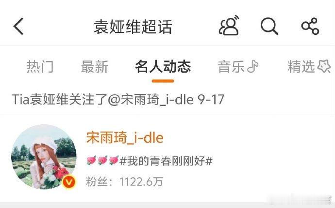 袁娅维关注宋雨琦袁娅维居然在微博关注宋雨琦了!这波前辈后辈的互动,看得我心里暖暖