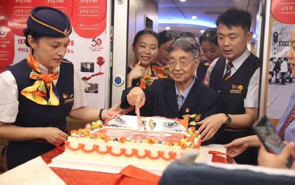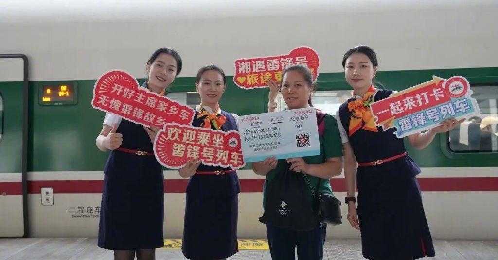 近日 “雷锋号”列车迎来 开行50周年的“生日” 中国铁路广州局集团有限公司长沙客运段在长沙至北京的D1/2次列车上举行了一场简短而热烈的庆祝活动,和旅客共同为这趟满载荣誉、闪耀着雷锋精神光辉的列车“庆生”。 设备不断升级,热忱服务不减 今年78岁的全国劳动模范王汉云激动不已,在长京车队一组列车长曾莉的陪伴下,登上了这趟列车。从基层列车员到享誉全国的劳动模范,她始终不忘自己是一名老“长京人”。 “开好主席家乡车,无愧雷锋故乡人”是王汉云上车后时常提起的话。 时光回溯到1975年,那时的1/2次旅客列车刚开通,列车客运乘务工作由长沙客运段长京车队担当。他们组建了“学雷锋服务小分队”,服务好每一名需要帮助的旅客,旅客们亲切地称这趟车为“雷锋号”列车。 这趟列车开行以来,车次先后变更为K1/2次、T1/2次、Z1/2次、D1/2次。从绿皮车到复兴号,从硬座到软席,从锅炉烧水到提供直饮水,“雷锋号”列车越来越好。2022年,中国铁路广州局集团有限公司党委将这趟车命名为“雷锋号”列车。 “我当时带领一个女子包乘组,从整理车容车貌到服务旅客,大家甘愿吃苦受累,劲往一处使,目标只有一个,就是要让旅客满意。”王汉云回忆道。 列车一路向北,窗景掠过,而过去的场景渐渐在眼前浮现:王汉云记得与列车组的年轻姑娘们不怕脏、不怕累,齐心协力整理车容车貌;记得一次次穿过拥挤的车厢,为每一位旅客送上热腾腾的水;记得对旅客嘘寒问暖,服务列车上的重点旅客…… 传承雷锋精神,为民初心不变 “现在,列车的工作环境、设备条件比过去好很多,我们勇于担当、甘于奉献的宝贵精神和优良传统绝不会丢!”王汉云拉着曾莉的手说。 “行进三千里,好事一火车”是“学雷锋服务小分队”一直在践行的精神。去年冬天,“学雷锋服务小分队”成员周威服务了一位行动不便的视障旅客,无微不至的照顾却被旅客婉拒,周威和同事随即将服务转为默默陪伴,用专业和耐心,让旅客感受到温暖。 “被需要是一种幸福。”周威笑着说,“当旅客用信任的眼神看着你、紧紧握住你的手说谢谢时,那种职业成就感是无可替代的。” 面对不同旅客的需求,周威的心得是“用心思考,不断学习”。50年间,车队不断探索创新服务形式,推出“一队、一车、三岗、三点、七项活动”服务方法,设置服务点、医药点、旅游咨询点,针对重点旅客推出爱心贴、便民卡、雷锋包“一贴一卡一包”暖心举措。 “每次遇到特殊情况,我们都会一起复盘,还自学了简单的手语、日常英语对话和老年人常见急症、婴幼儿护理等急救知识。”周威说。 架起沟通桥梁,奋斗追梦不止 1587公里的铁道线,是追梦的路,是回家的路,更是连接过去与未来、故乡与他乡的路。 在这趟车50周年的“生日会”上,有专程来参加活动的火车迷,有国庆中秋假期前返乡的大学生,也有往返两地出差的白领……他们都在赞叹列车工作人员细致的服务、高铁带来的便捷。 “我每周差不多要往返一次,这趟车的时间对我来说刚刚好。”旅客张先生说,“早上到达,不耽误白天办事;晚上返回,第二天早上就到家,准时、高效,这对我们经常出差的人来说太重要了!” 还有一位与这趟车相识多年的旅客,她叫肖红,今年已经年过半百,20来岁便从湖南到北京定居。 近30年来,她已经对这趟车的历史了然于心,会因为这趟车的舒适整洁和贴心服务专门乘坐,而让她最有感触的是:“我今天晚上在长沙坐车,明天早上就能在北京喝上豆汁儿了!” 历经多次车次车型更迭和提速,这趟车成为连接长沙、北京两地的桥梁,为两地的人才流动、经济发展注入强劲动力。 50周年 是里程碑也是新起点 这趟列车先后获得160多次荣誉 被评为“红旗列车” “红旗列车”的旗帜高高飘扬 在万里铁道线上再续荣光